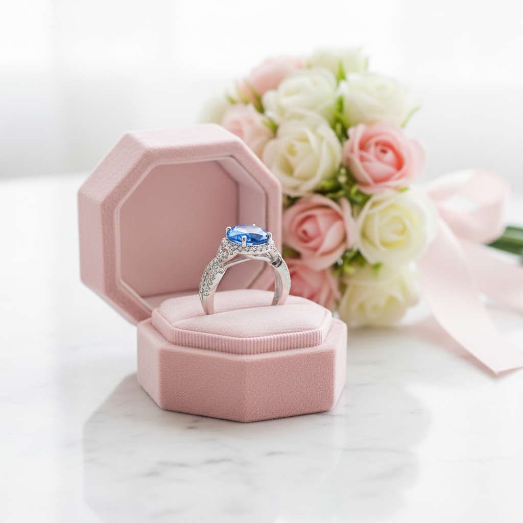 Stone Comparison: Falls between premium zirconium-based crystal and sapphire-grade simulants, with enhanced brilliance and clarity.