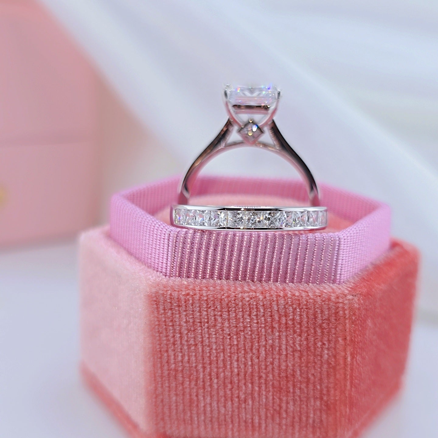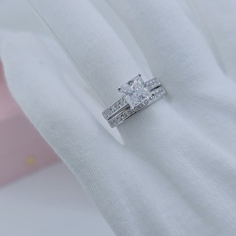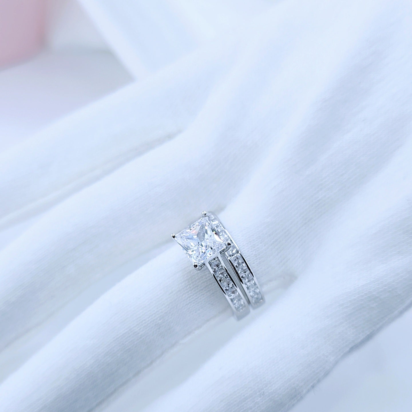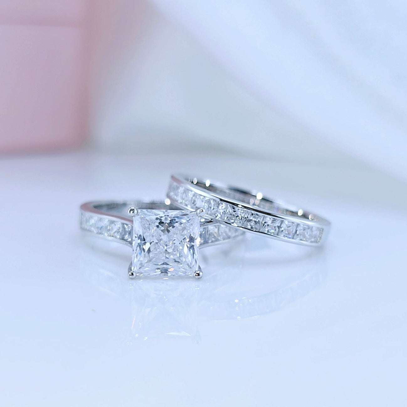 Transform a special moment into a lifelong memory with this stunning diamond ring set. Crafted with a 7mm princess cut diamond, this set is sure to sparkle and shine, making it the perfect symbol of your everlasting love and commitment. Give the gift of elegance and luxury with this exquisite ring set today!