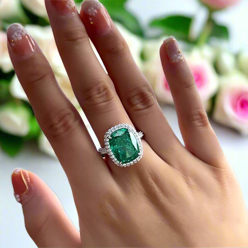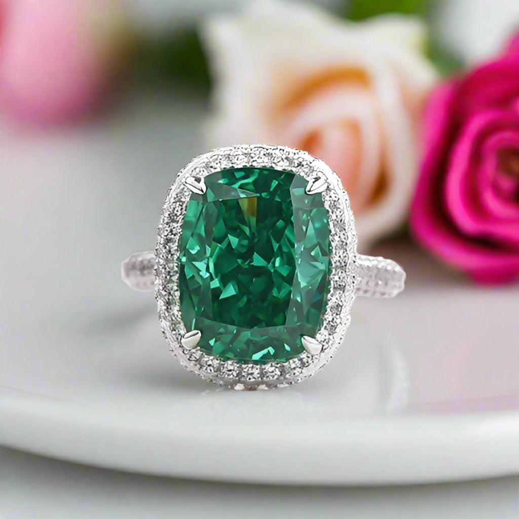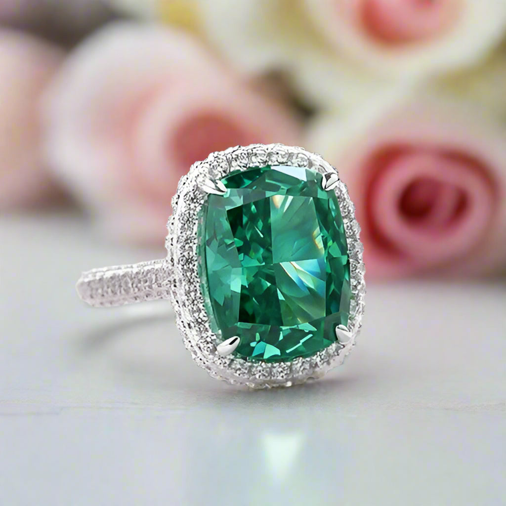 Gorgeous Halo Cushion Cut Paraiba Green Tourmaline Engagement Ring