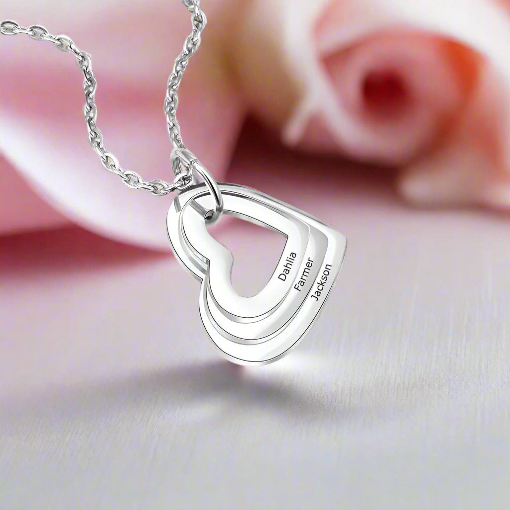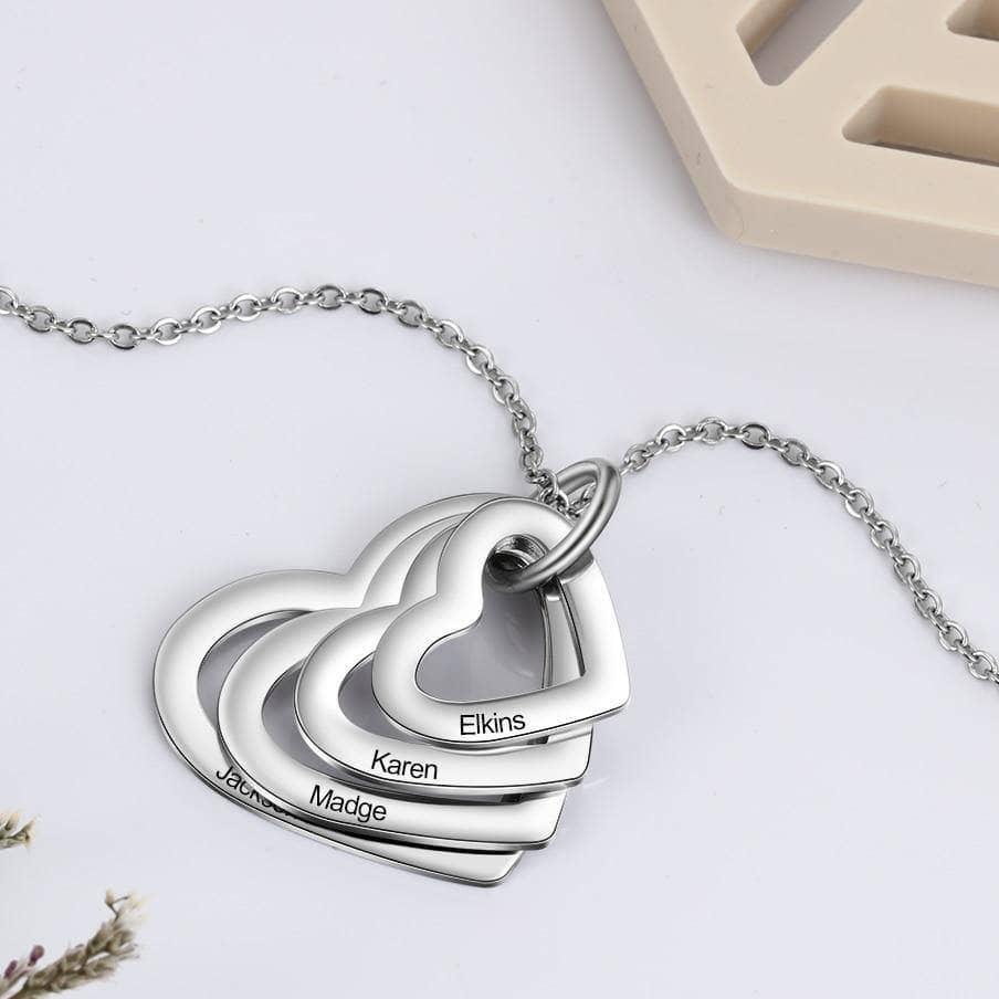 Show your love with our Custom Family Heart Necklace with 2-4 Names. This stunning piece features a heart pendant that can be customized with the names of your loved ones, creating a one-of-a-kind keepsake. Made with high quality materials, this gorgeous necklace offers both style and sentimentality at an affordable price point.