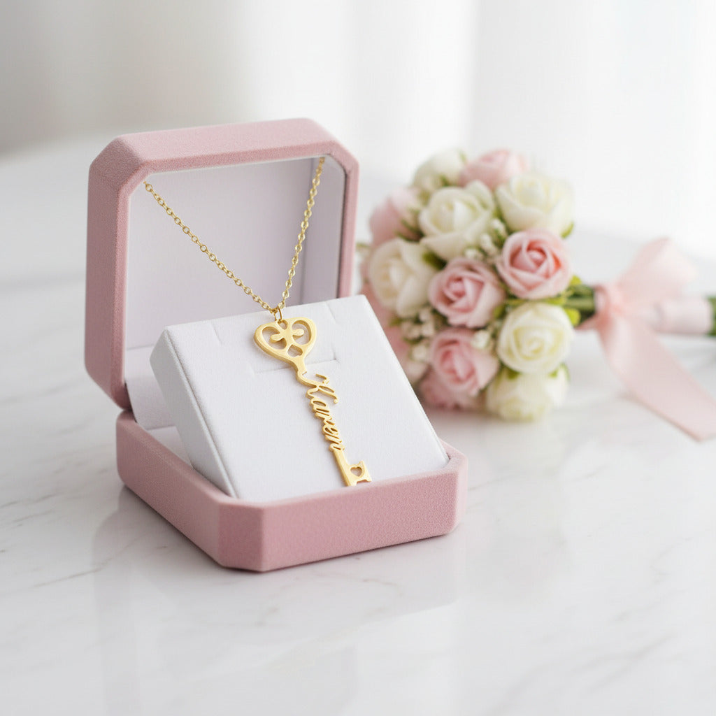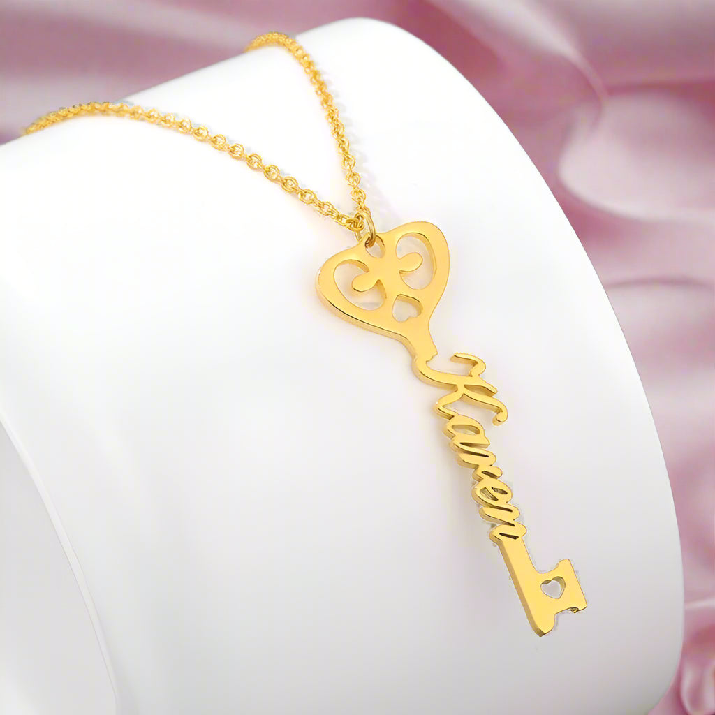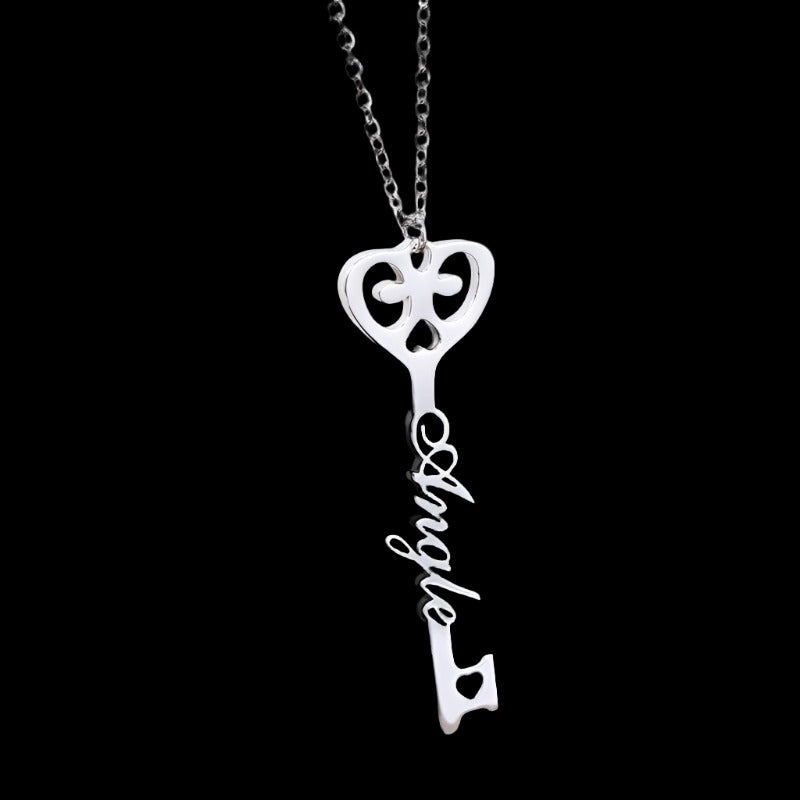 This custom name key pendant necklace from Black Diamonds New York is the perfect way to show off your personal style. Made with high quality materials, this stunning necklace is both affordable and gorgeous. Treat yourself or a loved one to this magnificent piece today!