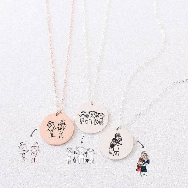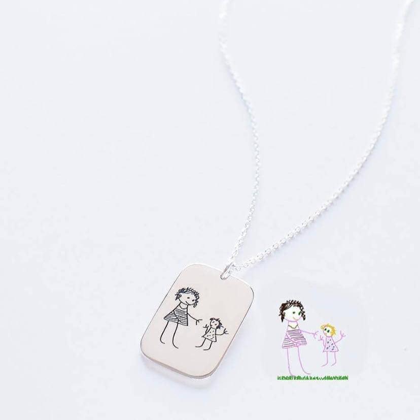 Customized Children's Drawing 925 Sterling Silver Memory Necklace