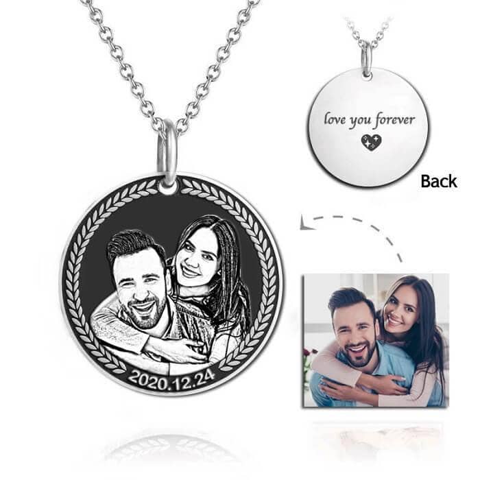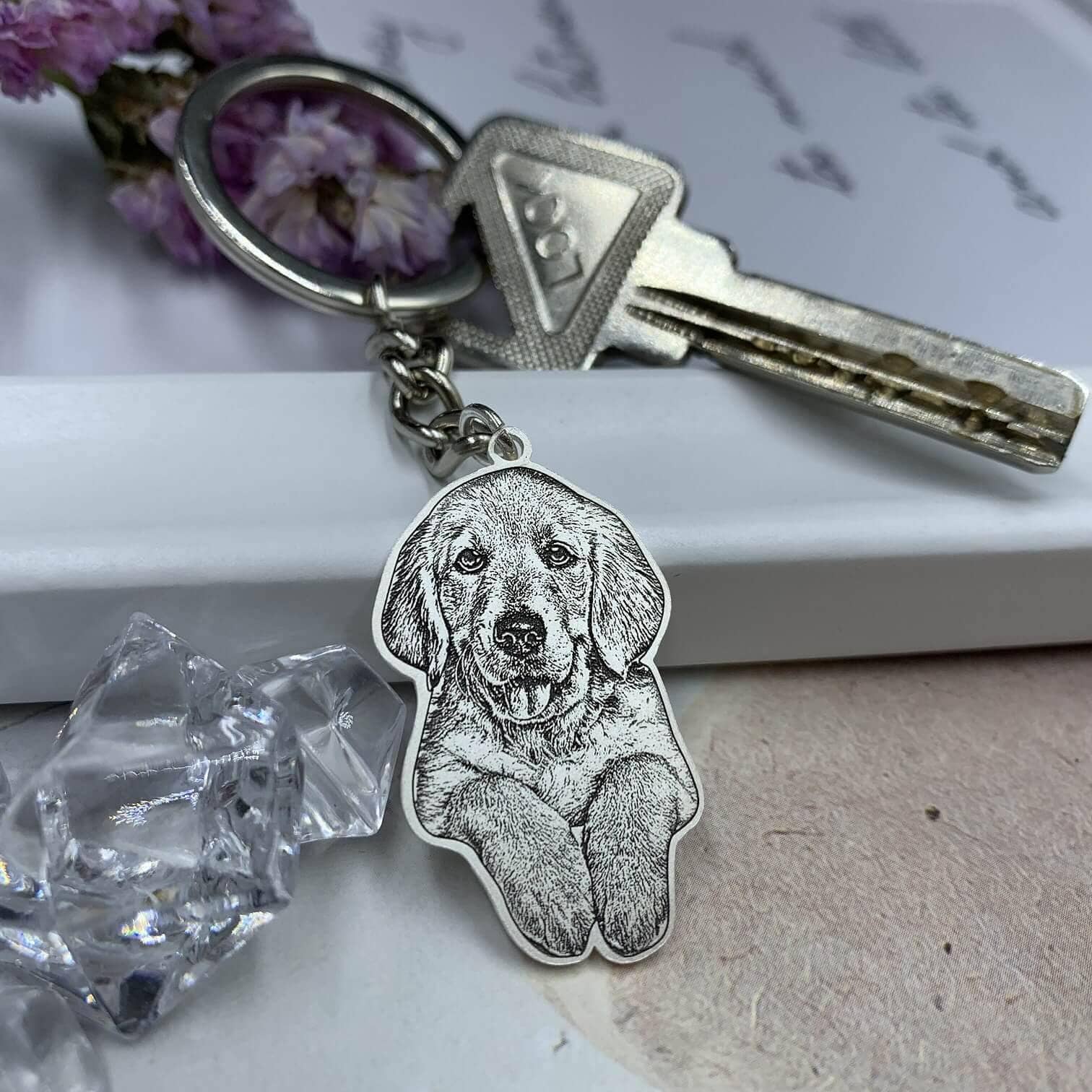 This sophisticated personalized pet photo necklace and keychain is crafted from premium silver and titanium metals, featuring a sleek O-chain design for a timeless and elegant accessory.