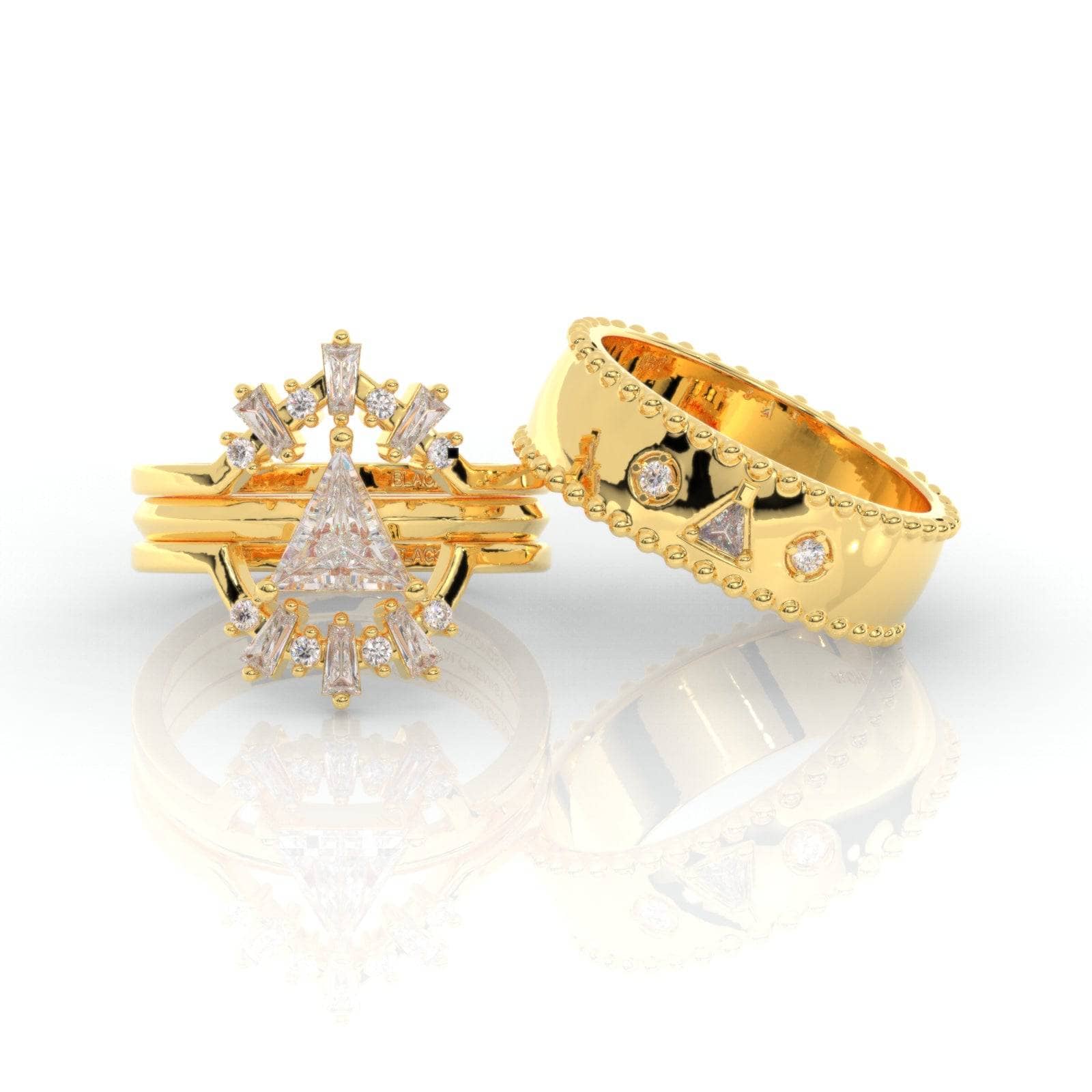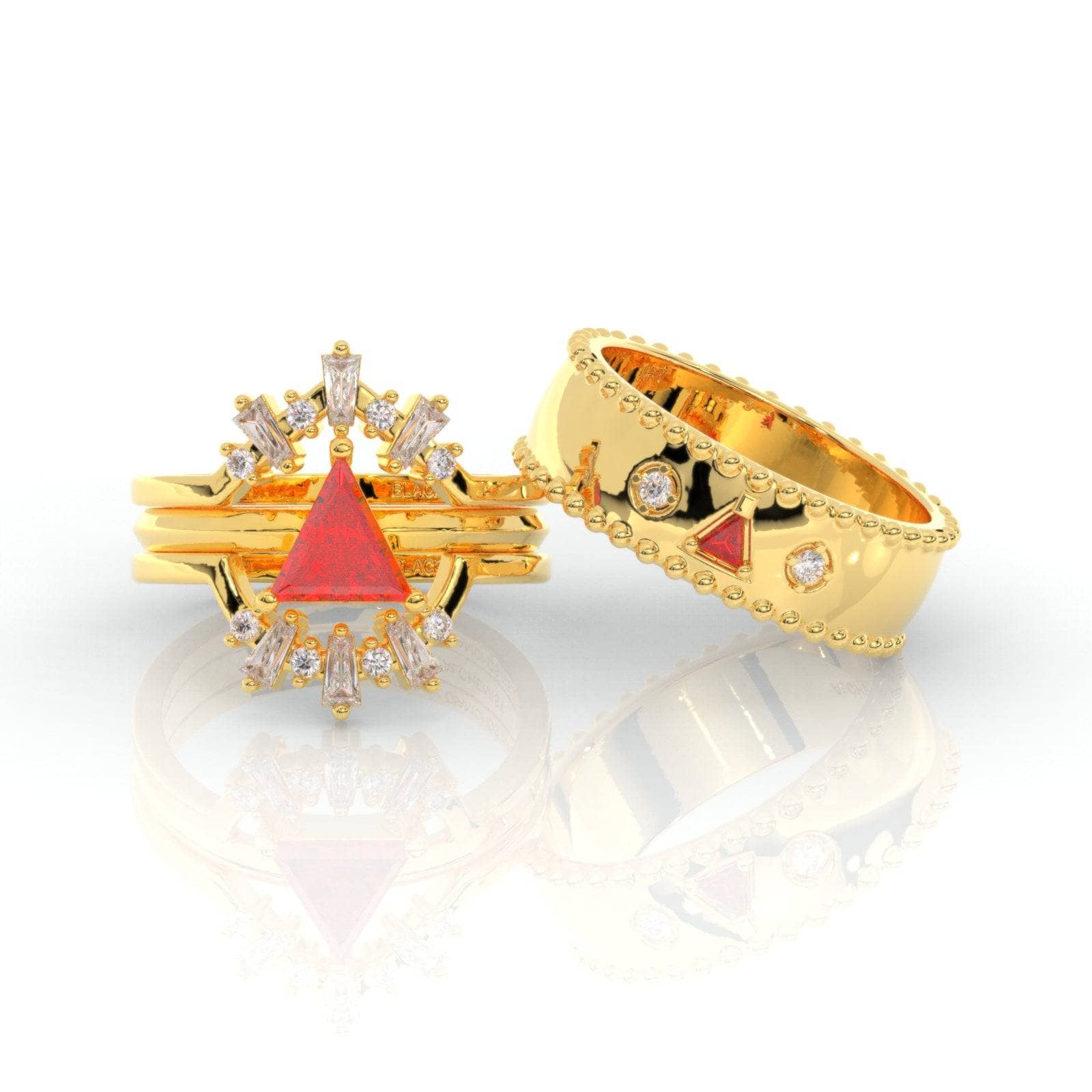 If you are someone who transforms things for the better, then you most likely belong to the Alchemist class! This set is inspired by no other than your favorite alchemist character. Handcrafted to perfection using various mystic potions to bring out the perfect alchemist princess in you. If you can transform lead or any base metal into gold, our team made sure that this stunning 3-piece ring set has all the perfect elements to rep your class. This set will definitely give you some pretty magnificent powers to win over the world and the love of your life.