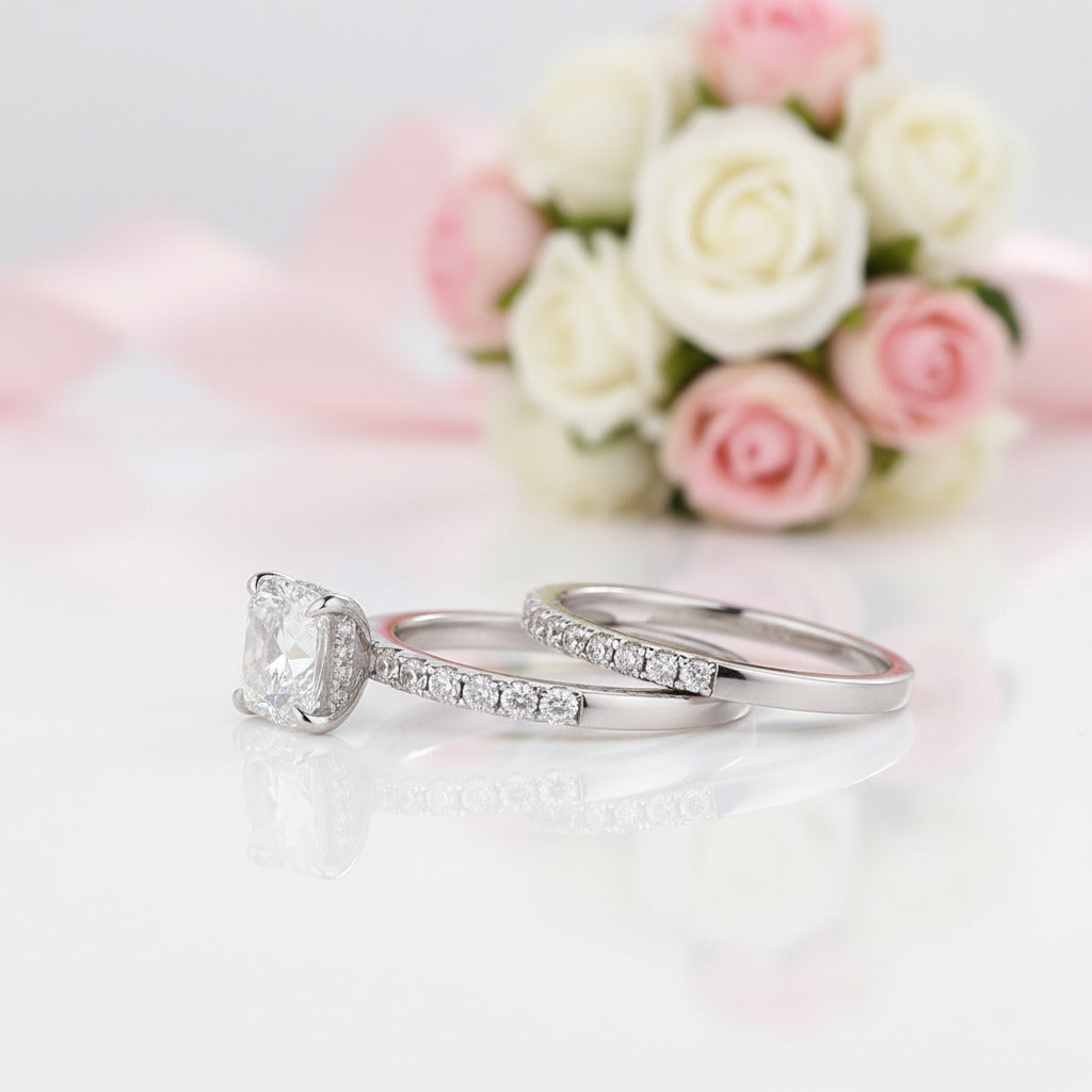 Elegant 1.5 Carat Cushion Cut Wedding Ring Set