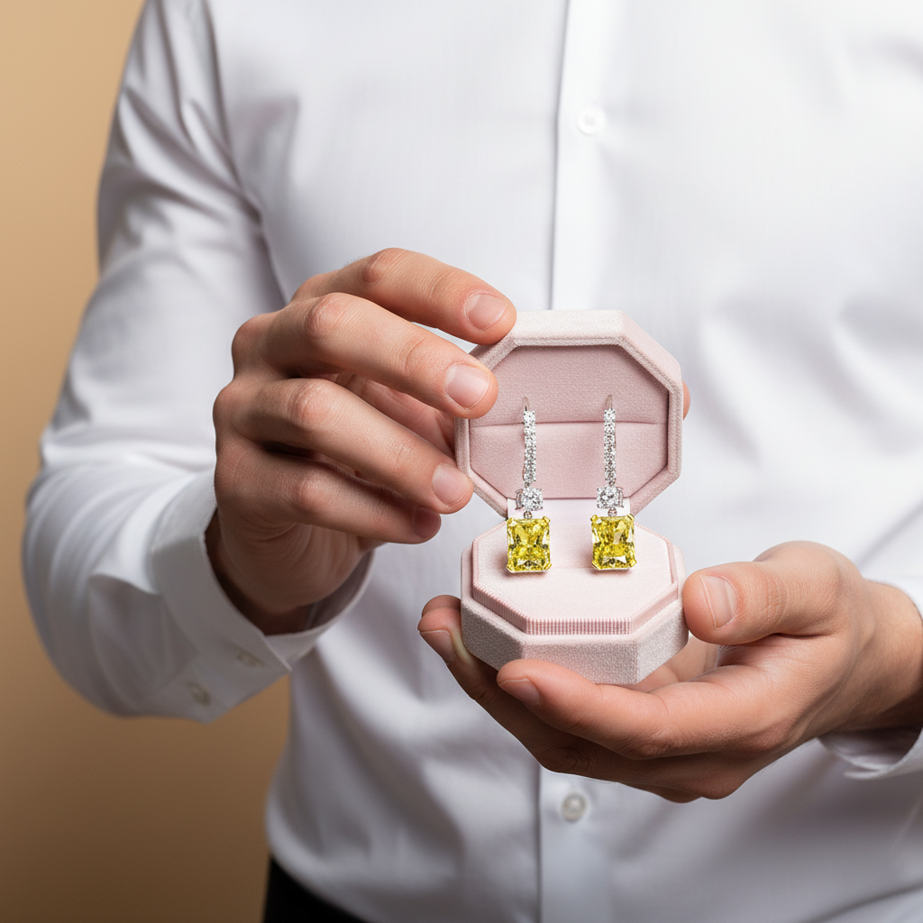 Crafted from premium simulated diamonds and solid 925 Sterling Silver, these Emerald Cut Diamond Yellow Sapphire Drop Earrings are designed to endure a lifetime. Expertly handmade, they showcase remarkable brilliance and sparkle just like genuine diamonds.