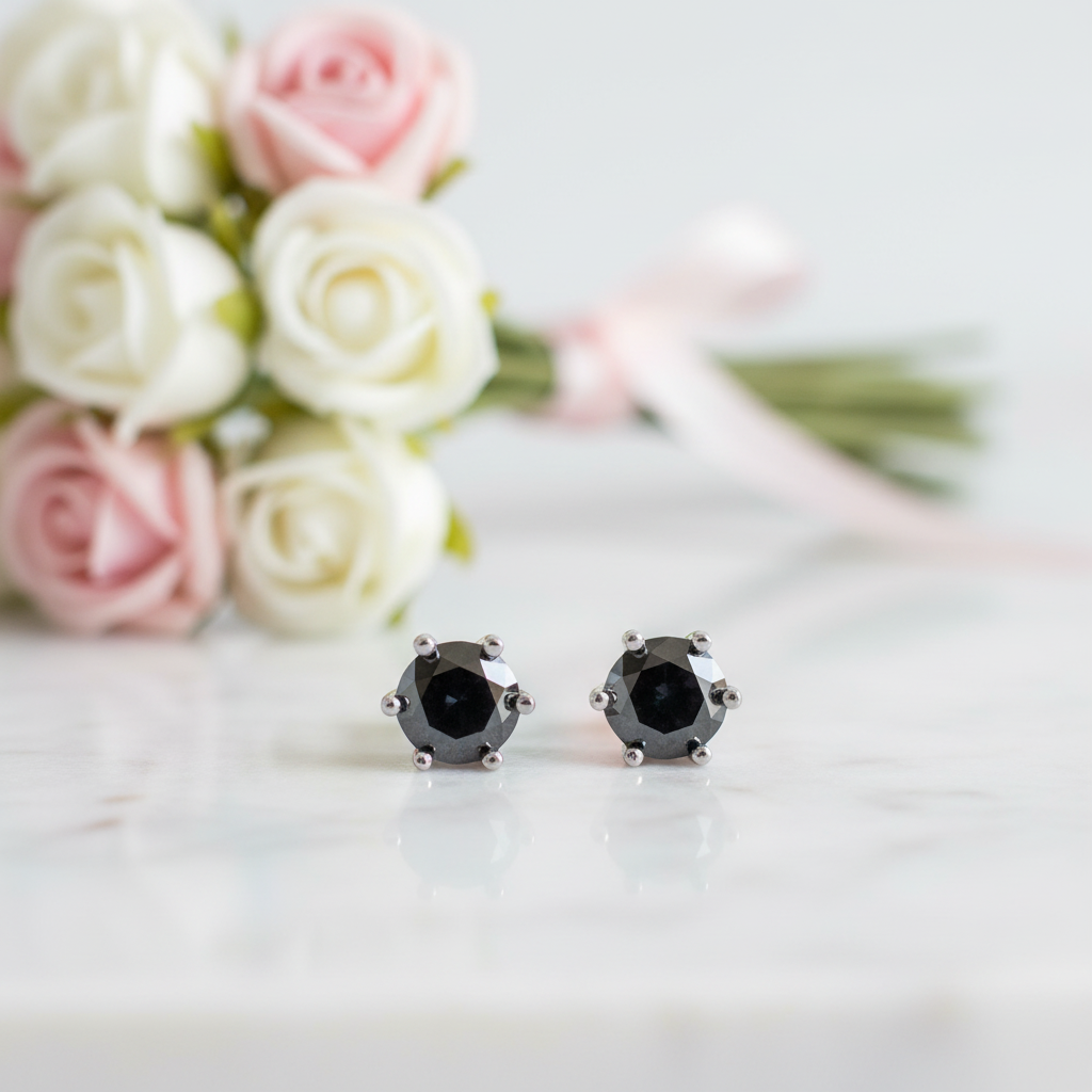 Make a statement with our exquisite stud earrings by Black Diamonds New York. These stunning earrings feature 2 total carats round cut black moissanite stones that exude elegance and sophistication. With their high-quality craftsmanship and affordable price, these earrings are a true gem. Crafted with 925 silver dipped 5x in 18k white gold, these earrings are as precious as they are beautiful.