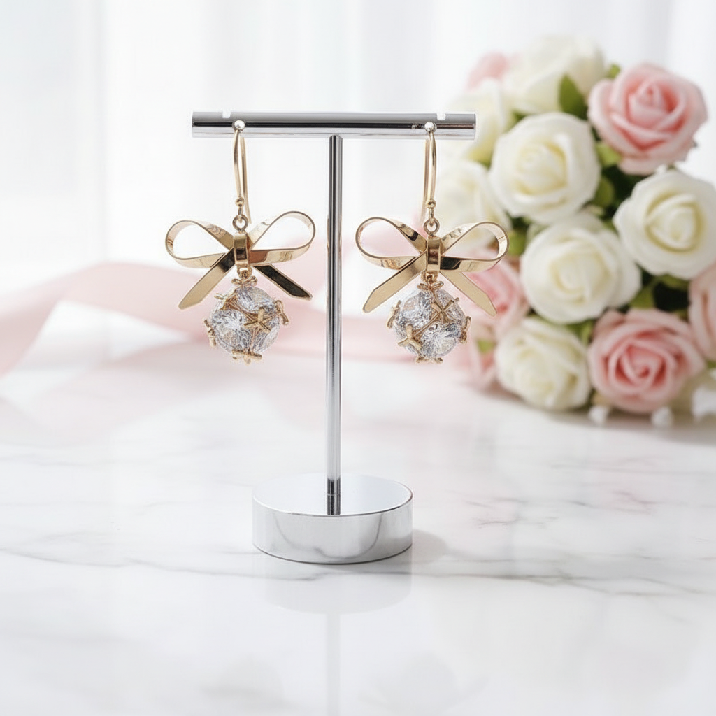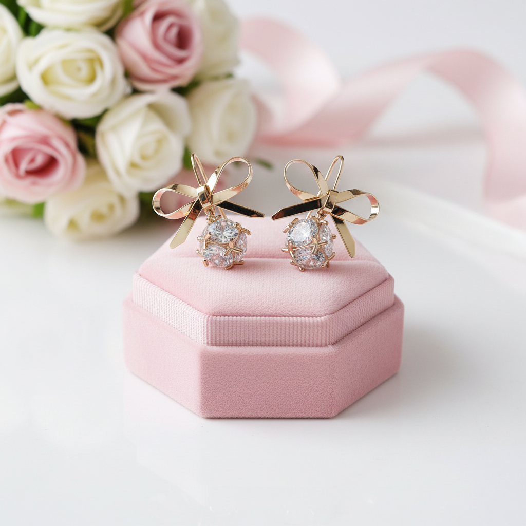 Round Diamond Option Short Simple Bow Earrings