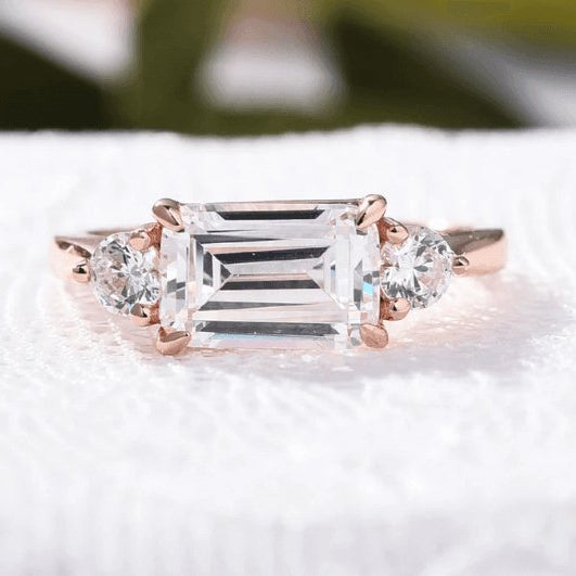 2.5 Carat Emerald Cut Three Stone Engagement Ring