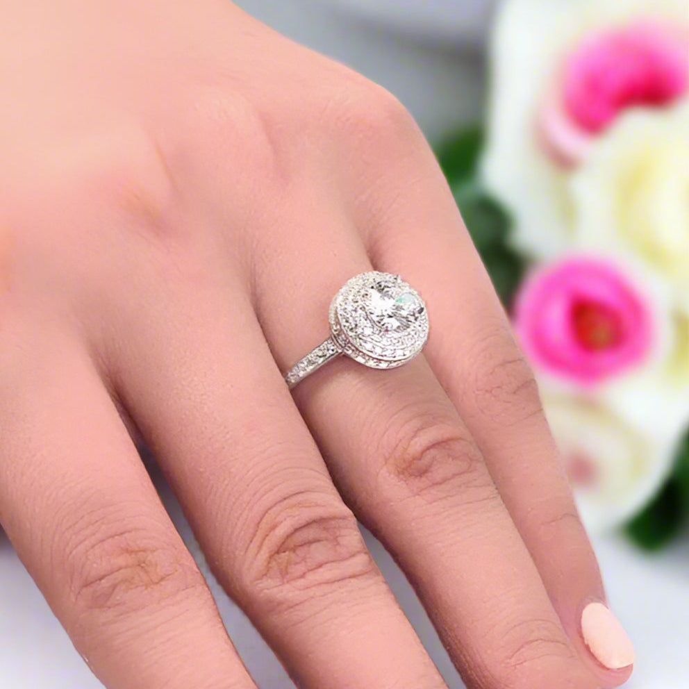 1.0 Ct Round Cut Diamond Double Halo Engagement Ring