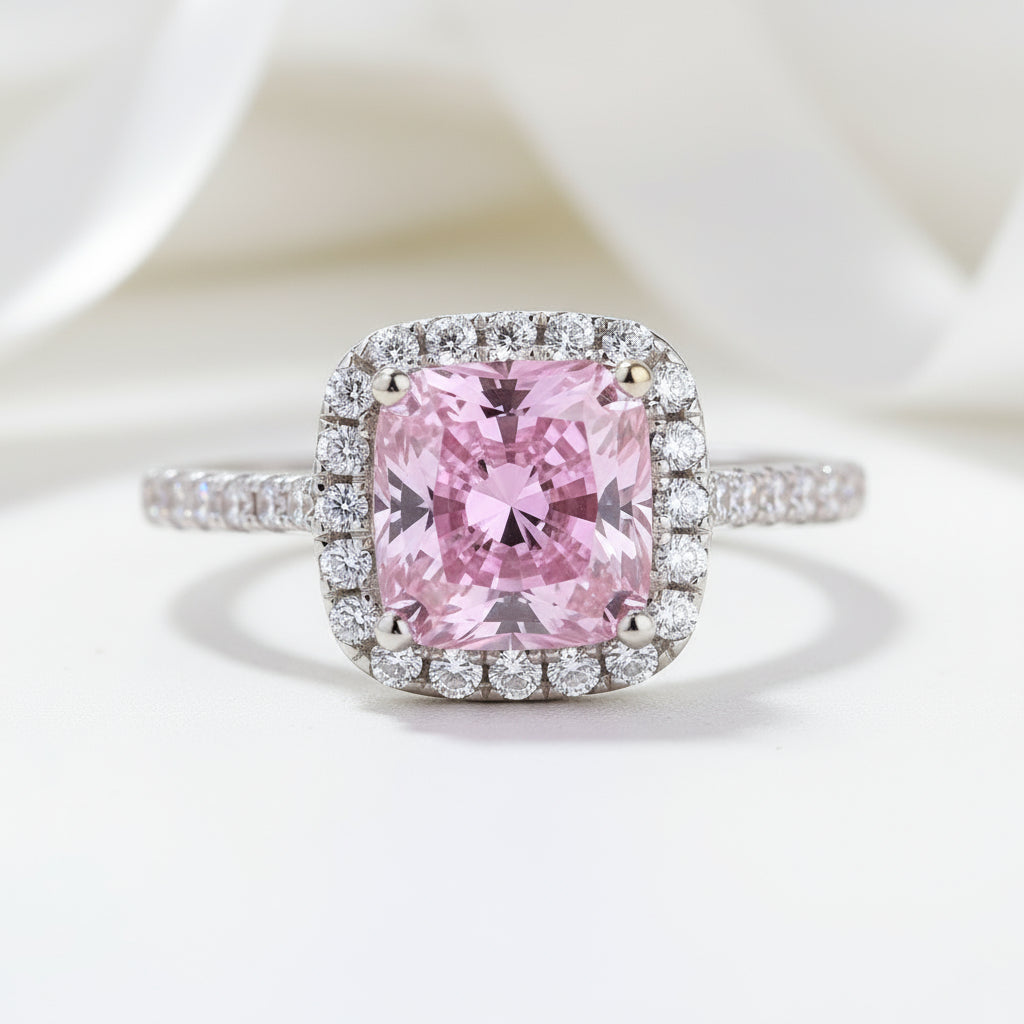 1.5 Carat Cushion Cut Pink Halo Engagement Ring