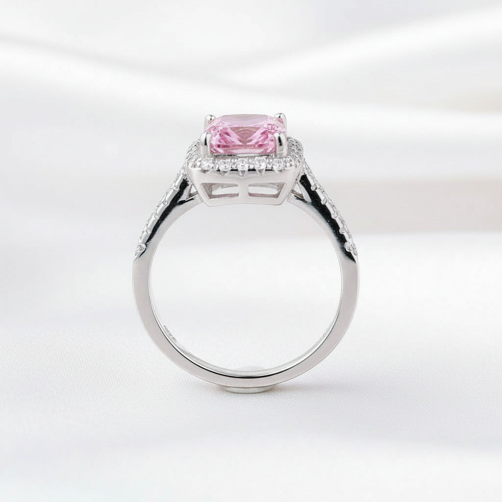 The 1.5 Carat Cushion Cut Pink Halo Engagement Ring showcases meticulously hand-set diamonds. Its elegant design makes it ideal for engagements, weddings, promise rings, bridal sets, anniversaries, and couples. It also serves as a thoughtful gift for birthdays, Mother's Day, Valentine's Day, Thanksgiving, Christmas, and many other special moments.