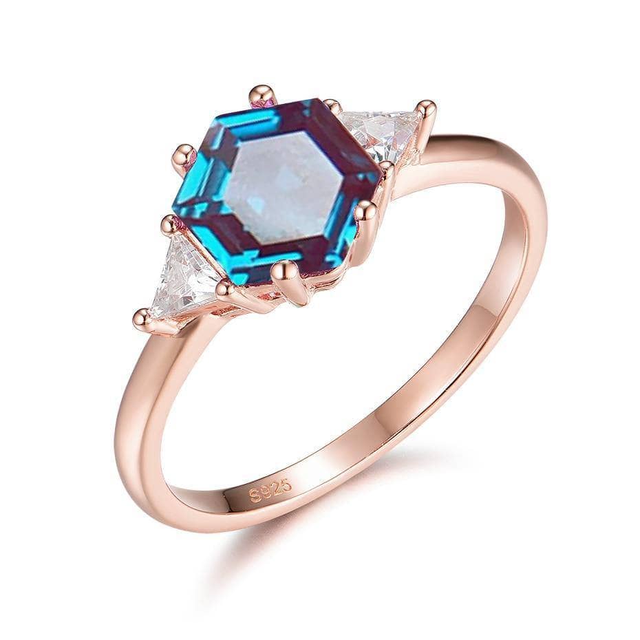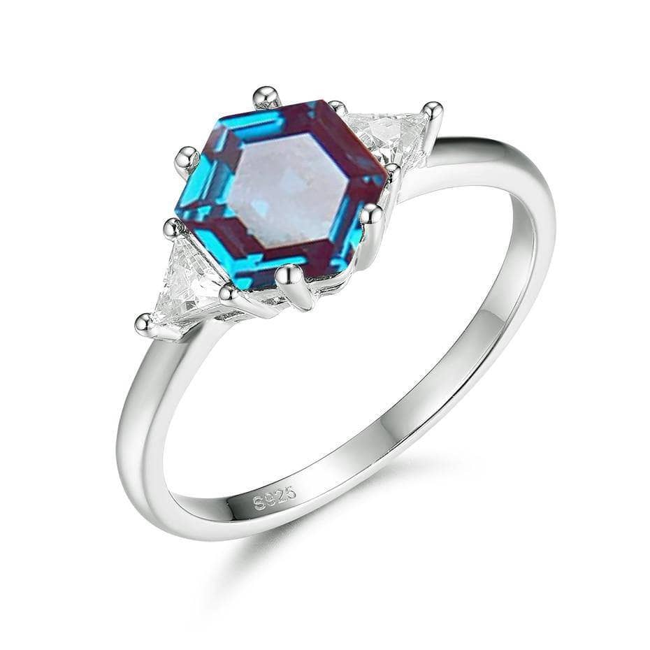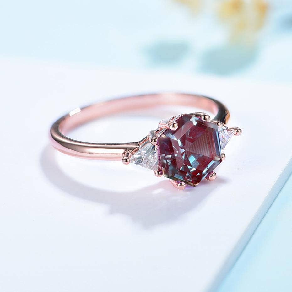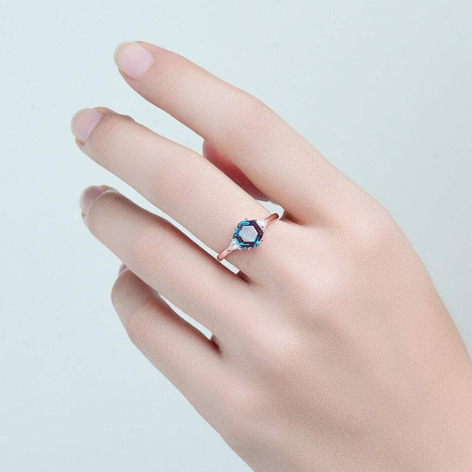 2ct Hexagon lab grown Alexandrite Gemstone Ring