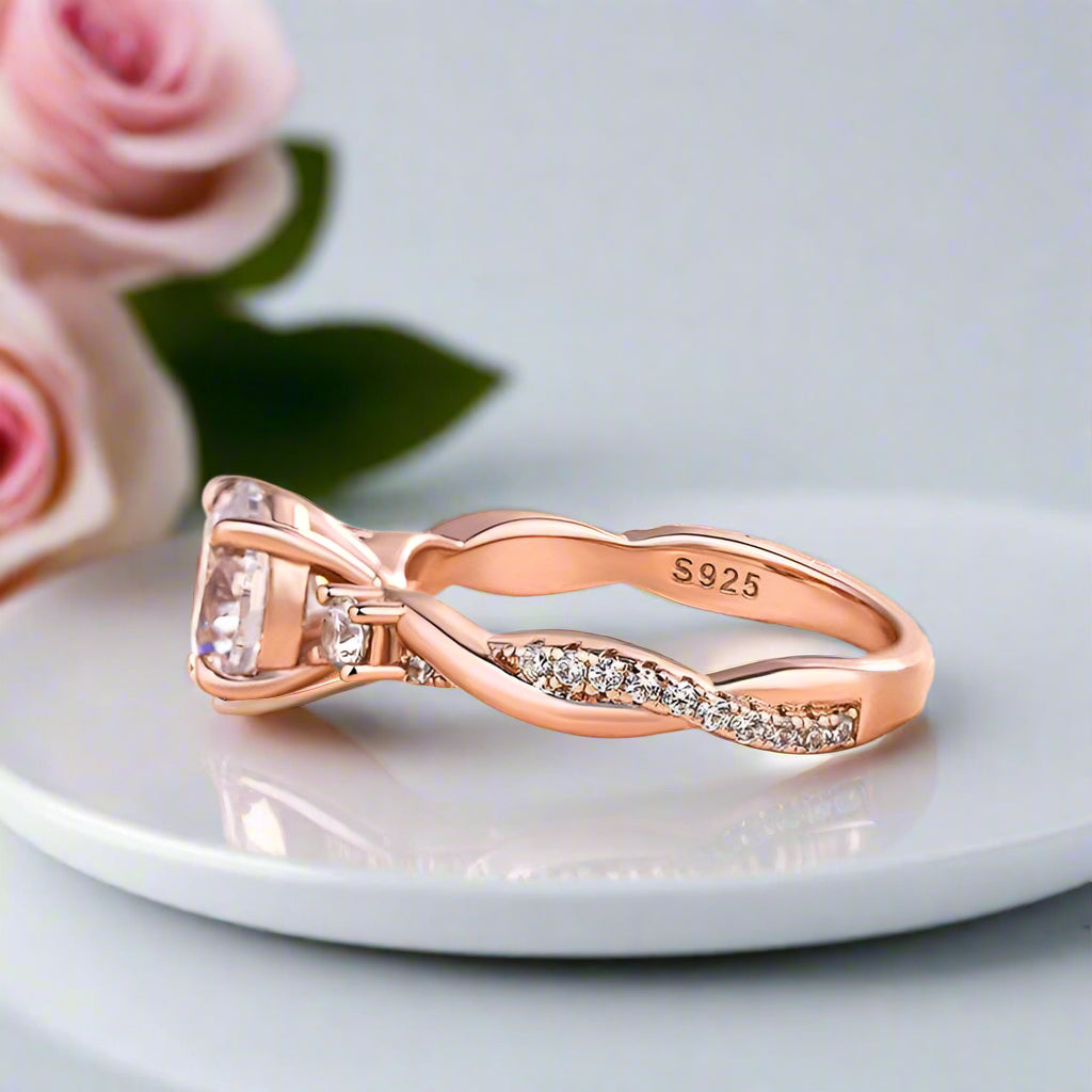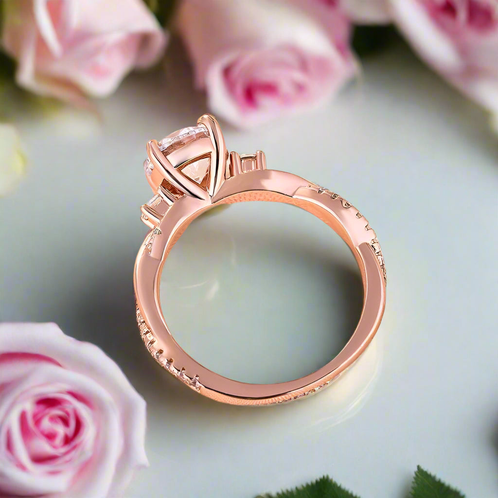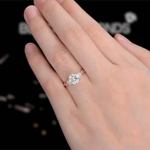 Twist Round Cut Three Stone Engagement Ring