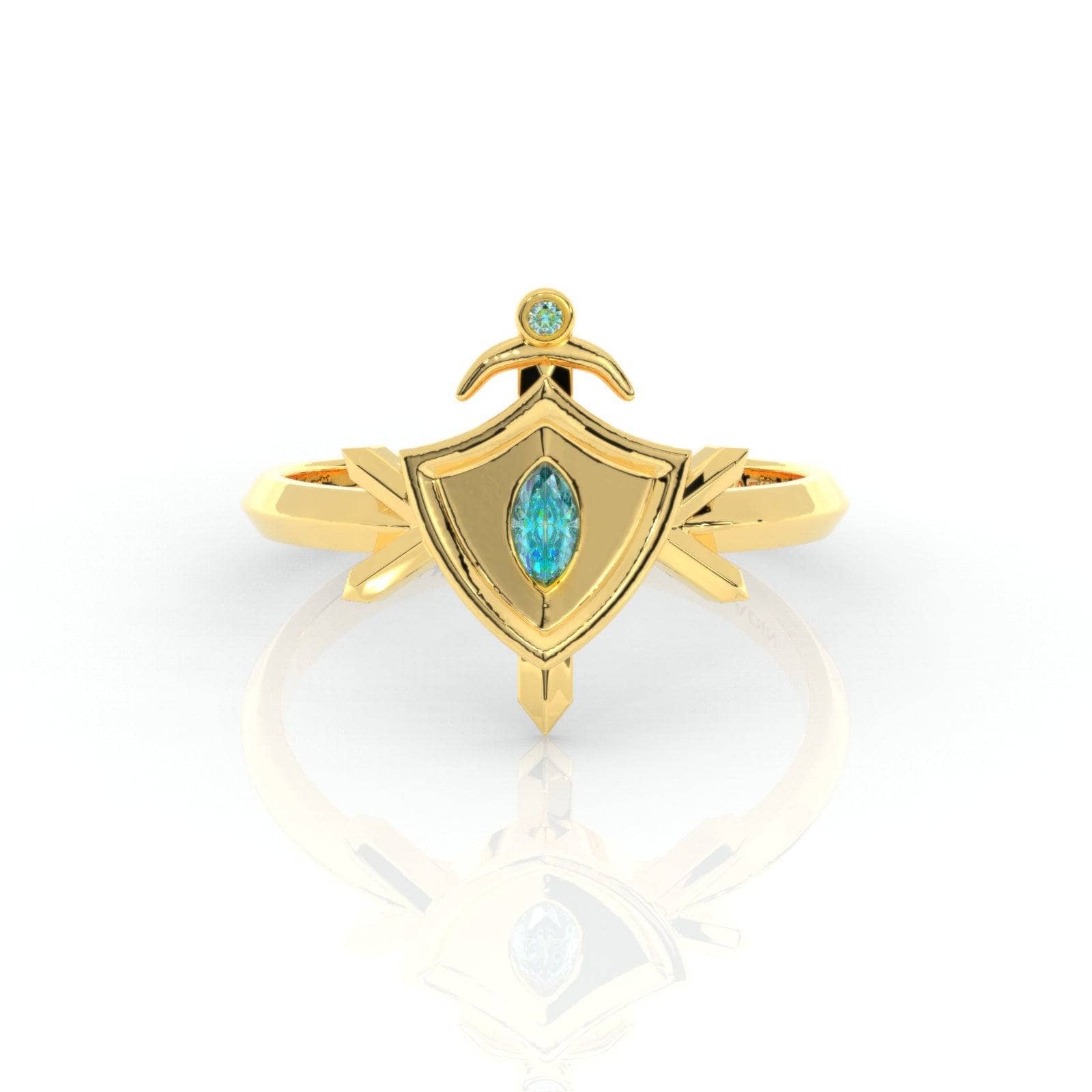 Paladin's Shield Ring (Unisex)- 14k Yellow Gold Video Game Inspired Rings