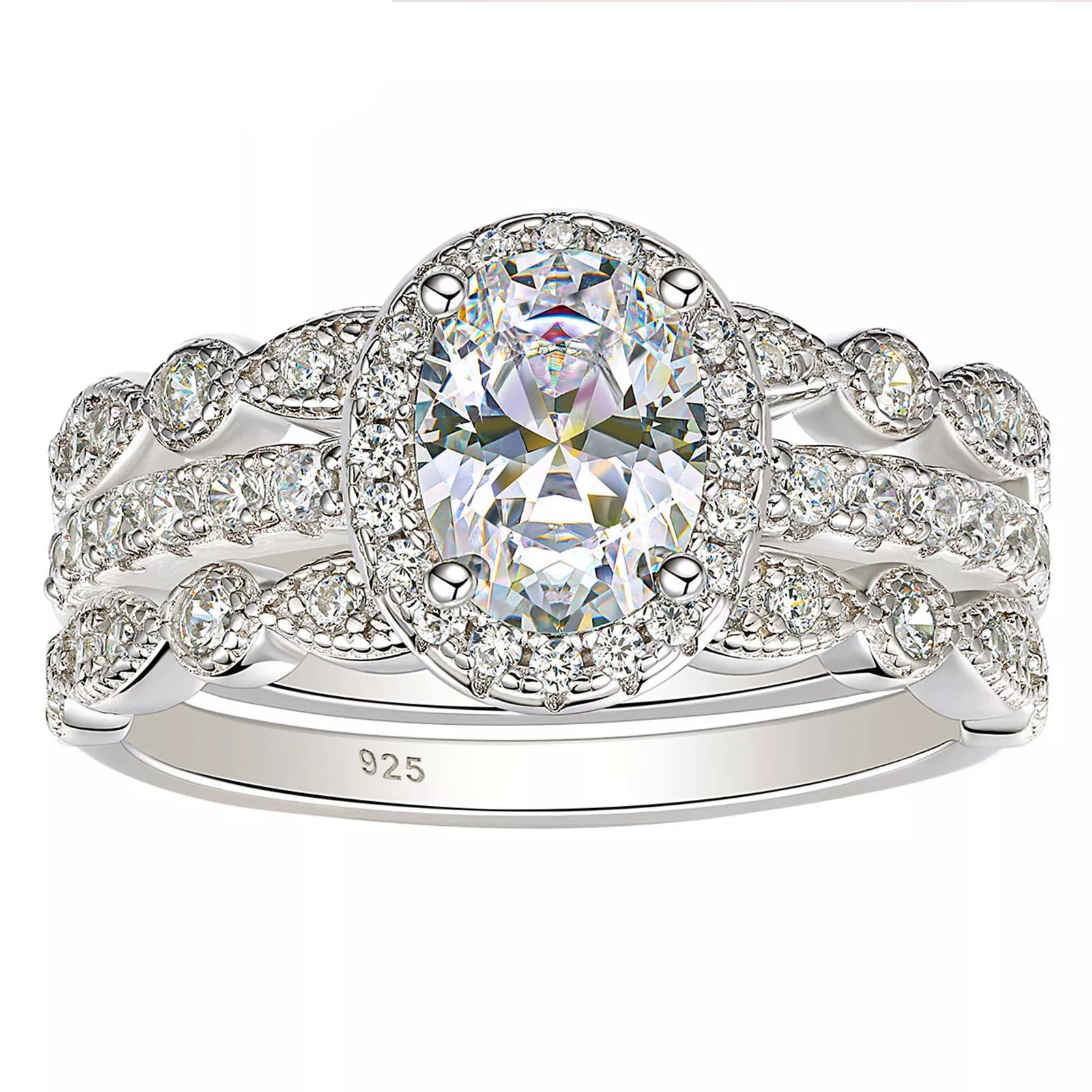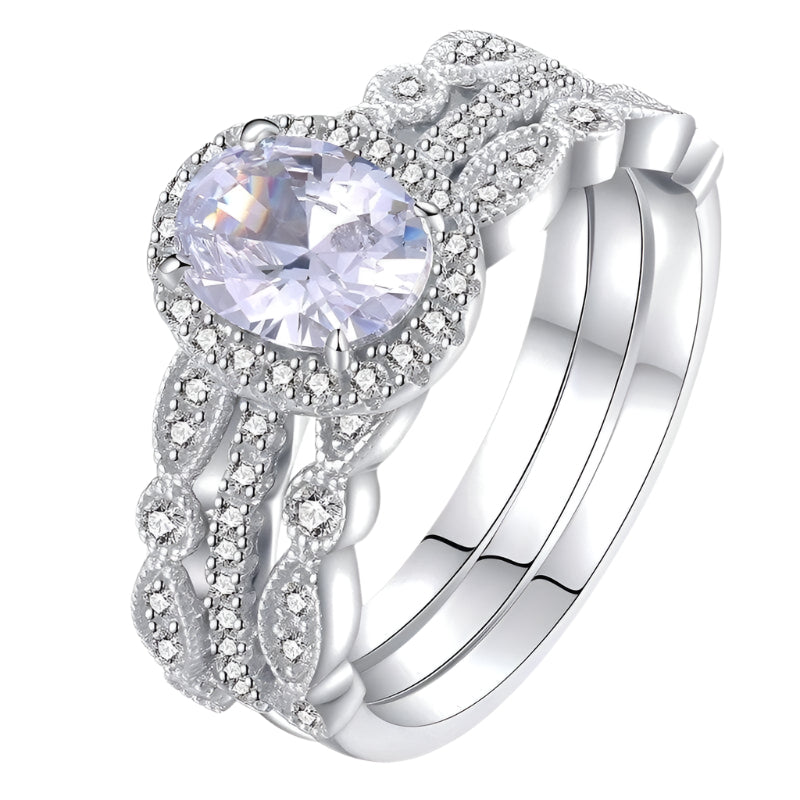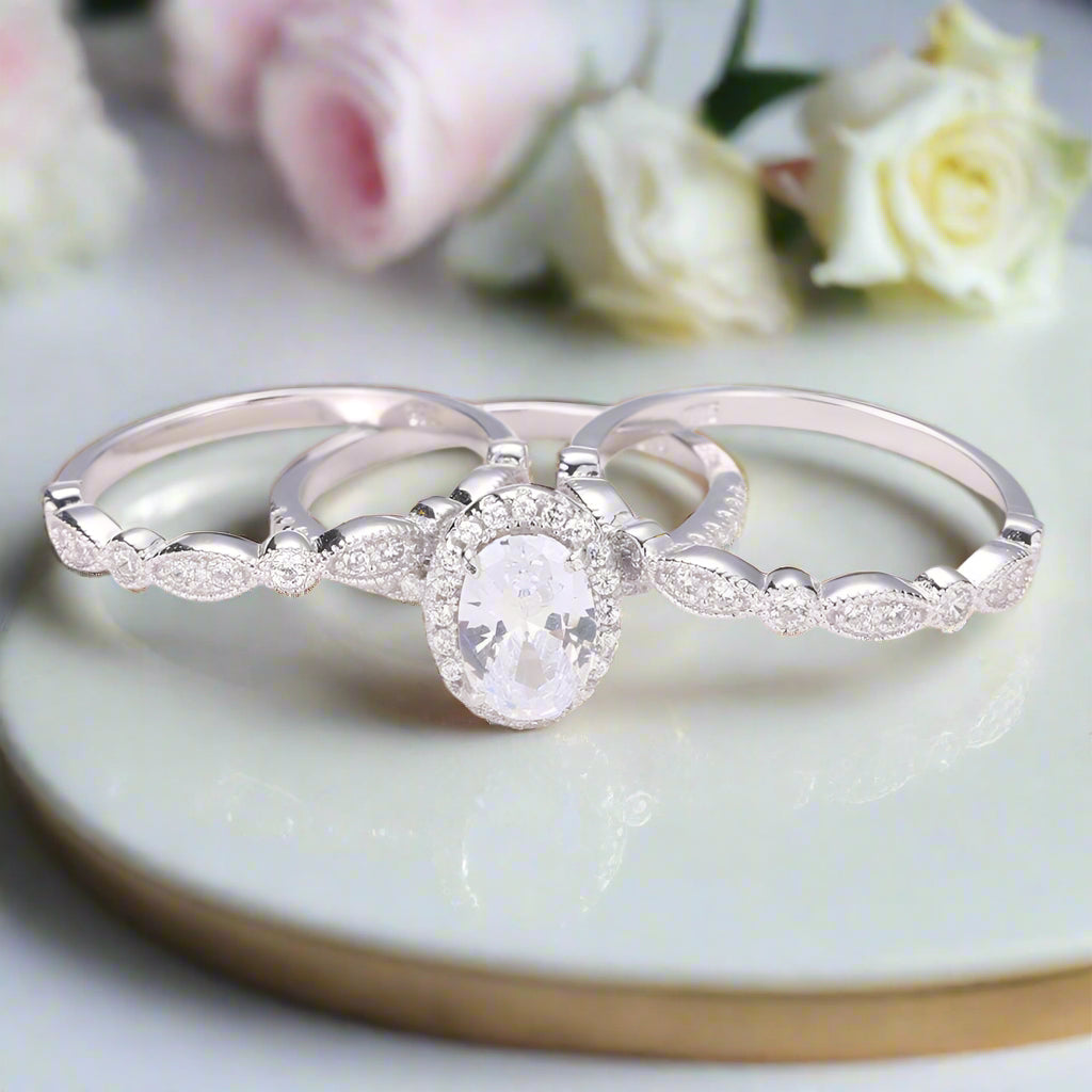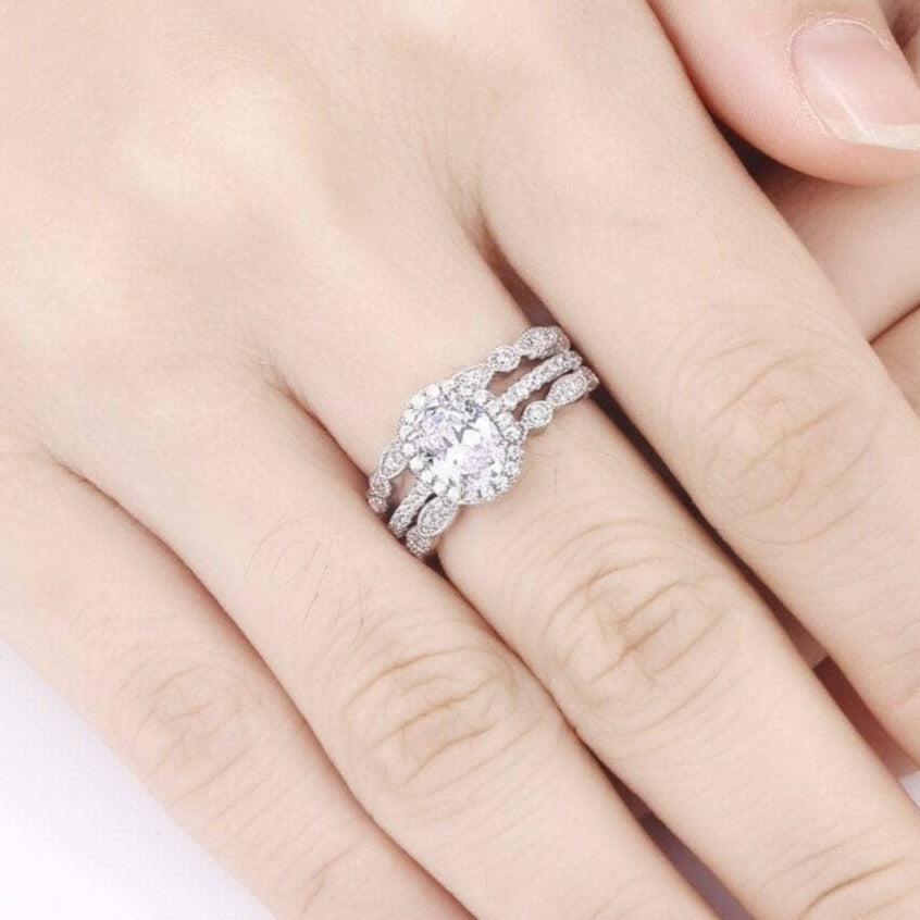 1.8ct Oval Cut Diamond Vintage Style Ring Set