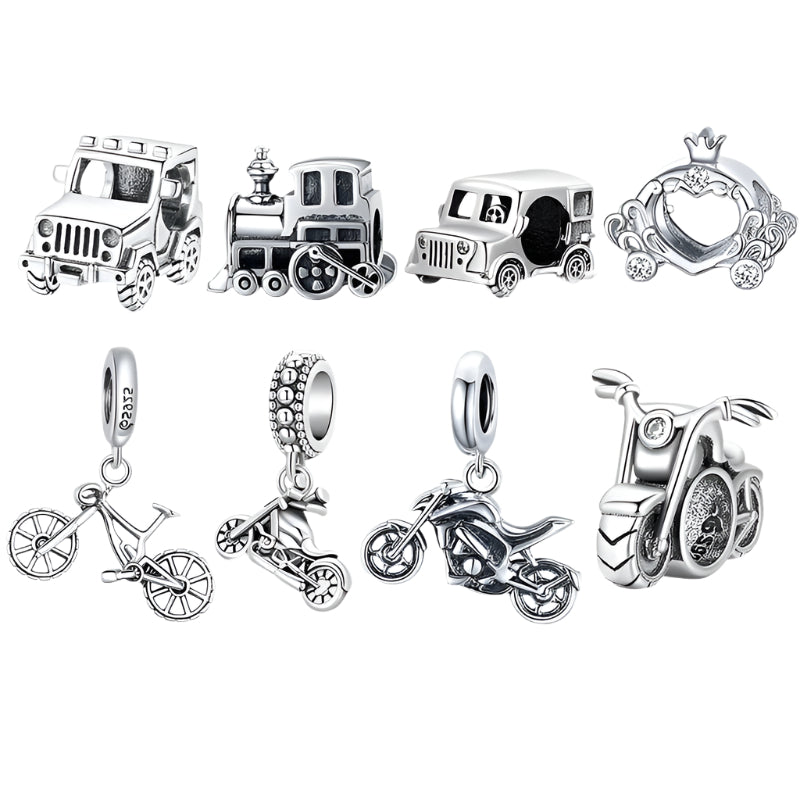 Take a journey through time with Black Diamonds' Classic Transportation Charm Beads. This extraordinary jewelry features a classic car, bicycle, and train all set in 92.5% pure silver and 7.5% high quality and hypoallergenic metals - and of course, diamonds included! Make a statement with this unique and unusual design at an affordable price and experience an adventure like no other.