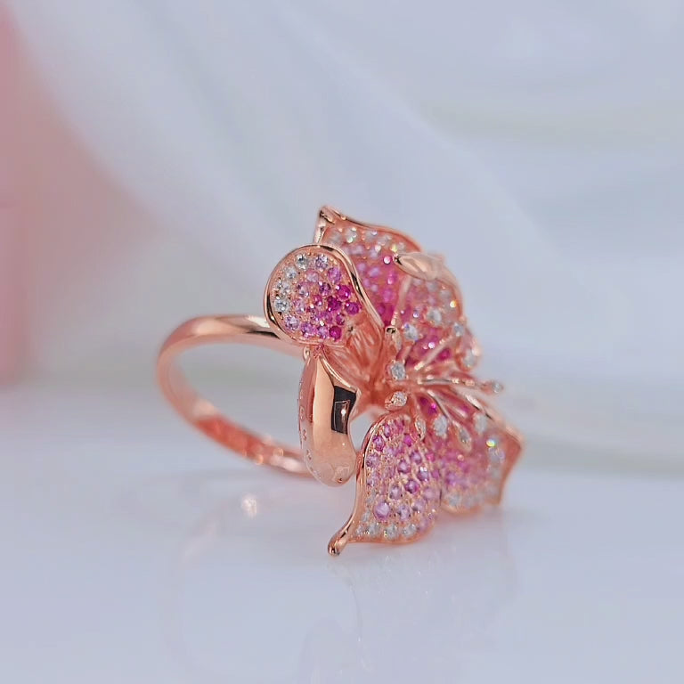 Lab Created Ruby & Sapphire Flower Blossom Ring