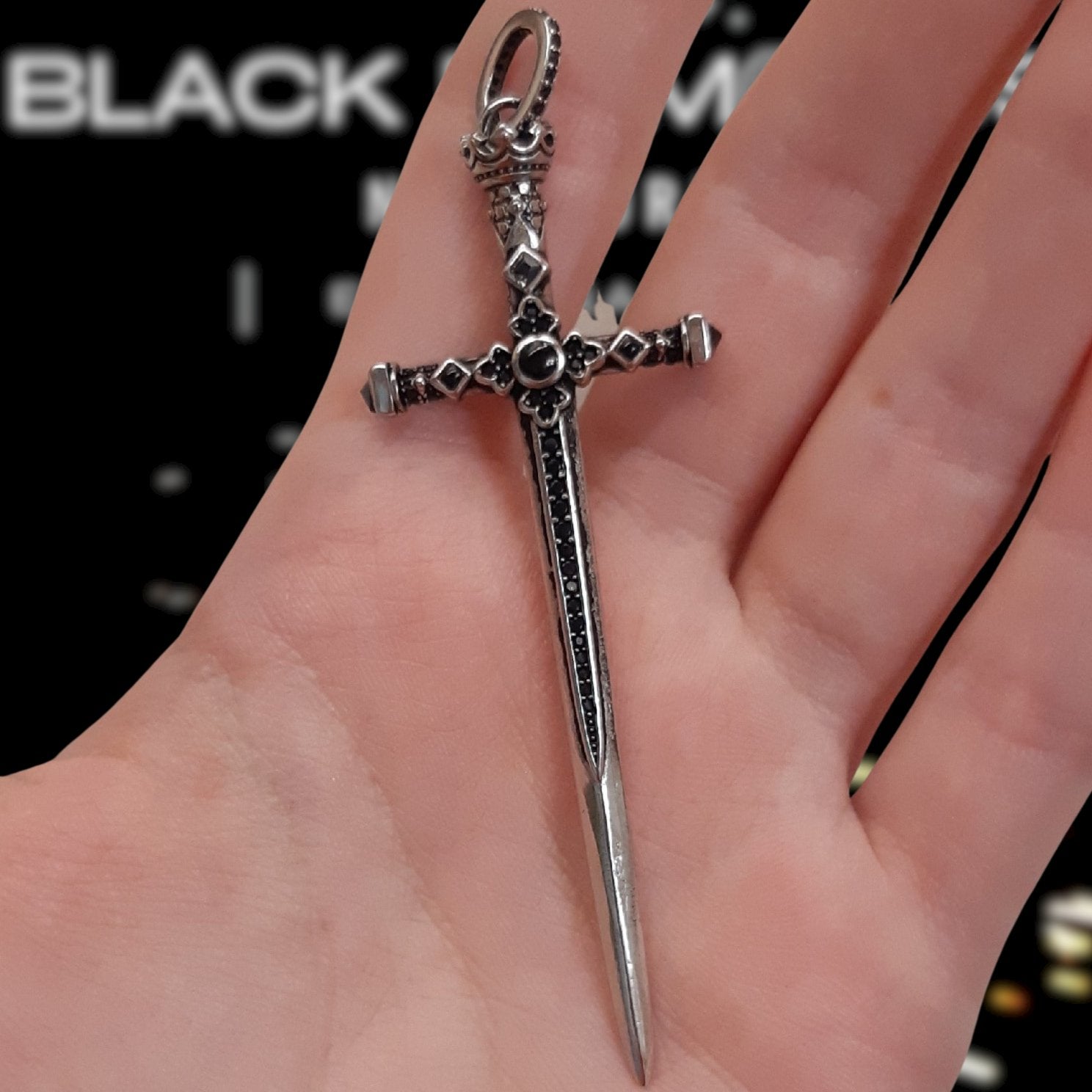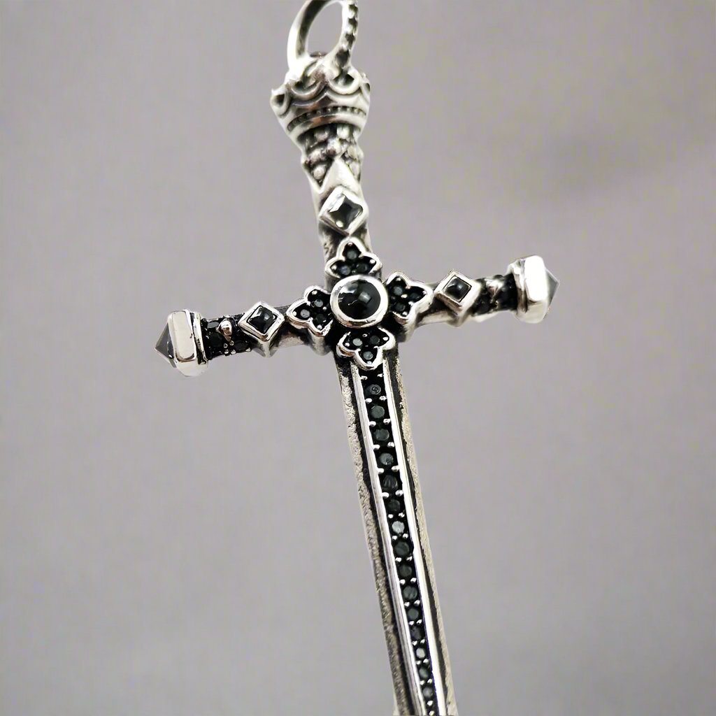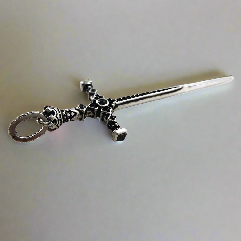Show your adventurous side and make a statement with the Royal Sword of Courage Punk Pendant. Crafted out of 925 Sterling Silver and featuring a black diamond detail, this unique piece created by Black Diamonds New York is inspired by the punk culture and features a symbolism of courage that is boldly edgy and gothic-inspired.