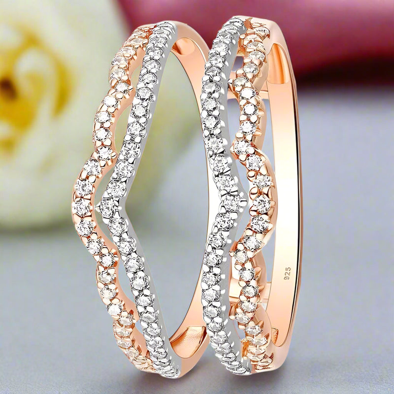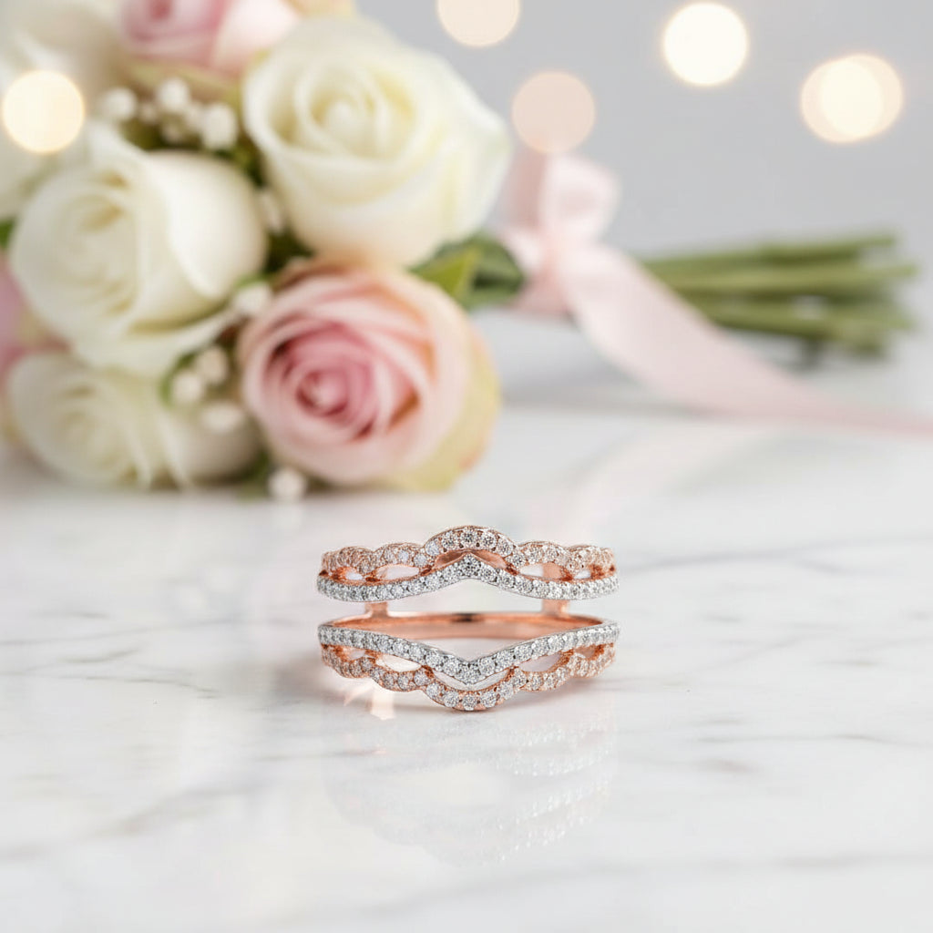 Elevate any ring with this two-tone curve enhancer. Its sleek design pairs seamlessly with most ring styles, while diamond alternative stones deliver brilliant sparkle. A modern, versatile piece that adds sophistication to your jewelry collection.