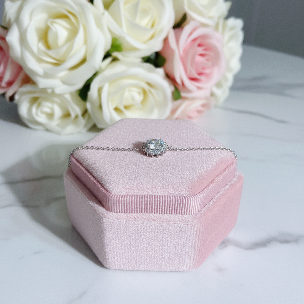 Stone Comparison: Falls between premium zirconium-based crystal and sapphire-grade simulants, with enhanced brilliance and clarity.