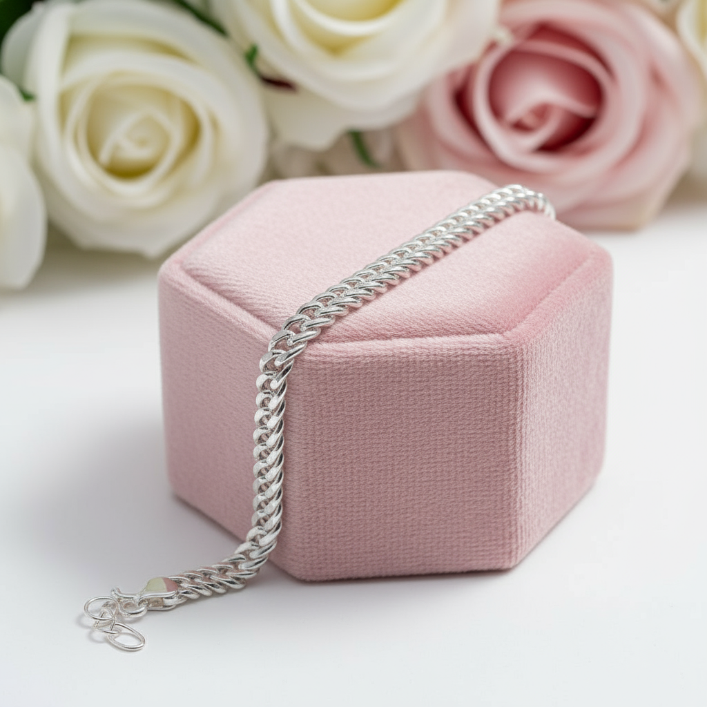 Introducing the Cuban Link Chain Adjustable Bracelet, crafted with the highest quality materials including solid 990 pure silver and stamped with a 990 mark. With its adjustable design and a width of 1 cm, this bracelet is the perfect addition to any jewelry collection. Elevate your style with our Cuban Link Chain Bracelet today!