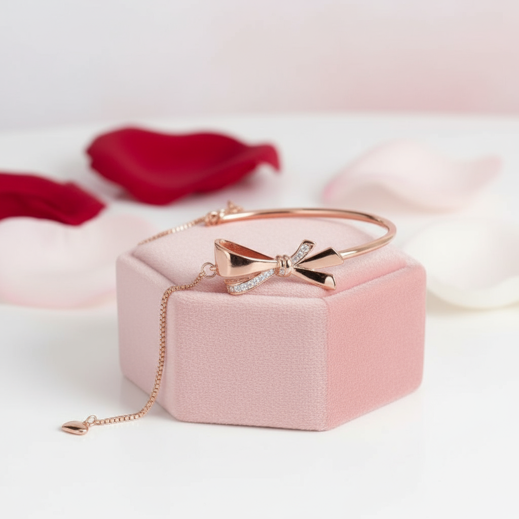 Elevate your style with our Diamond Delicate and Classic Bow Element Bracelet, crafted from high-quality silver plated with luxurious rose gold or white gold and adorned with sparkling created diamonds. Bring a touch of elegance and luxury to any outfit with this stunning piece.