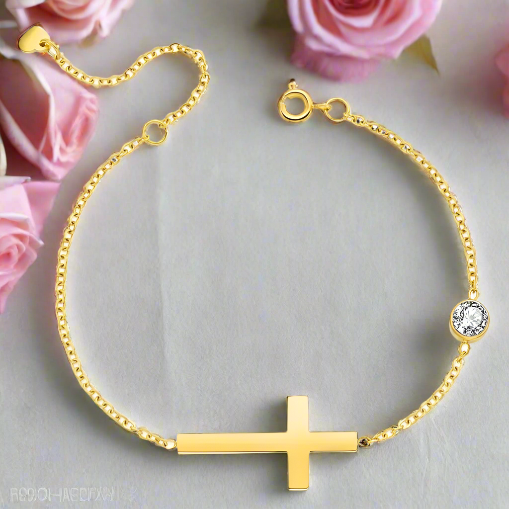 Elevate your style with our stunning Vintage 4mm Round Cut Certified Moissanite Cross Bracelet from Black Diamonds New York. This gorgeous piece features high quality 925 silver dipped 5x in 18k gold, perfect for adding a touch of vintage charm to any outfit. The sparkly moissanite stones will catch the light and dazzle all day long. Affordable luxury at its finest!