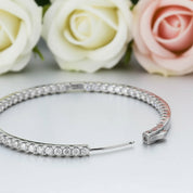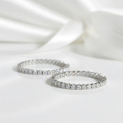 2.5mm Full Moissanite Hoop Earrings featuring certified moissanite stones set in 925 silver with 5x platinum dipping. These lightweight hoops deliver brilliant sparkle and timeless elegance. Perfect for everyday wear or special occasions, they offer the luxury look of diamonds at an accessible price point. A versatile staple that complements any style.