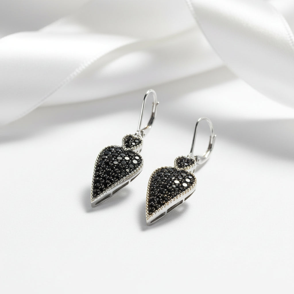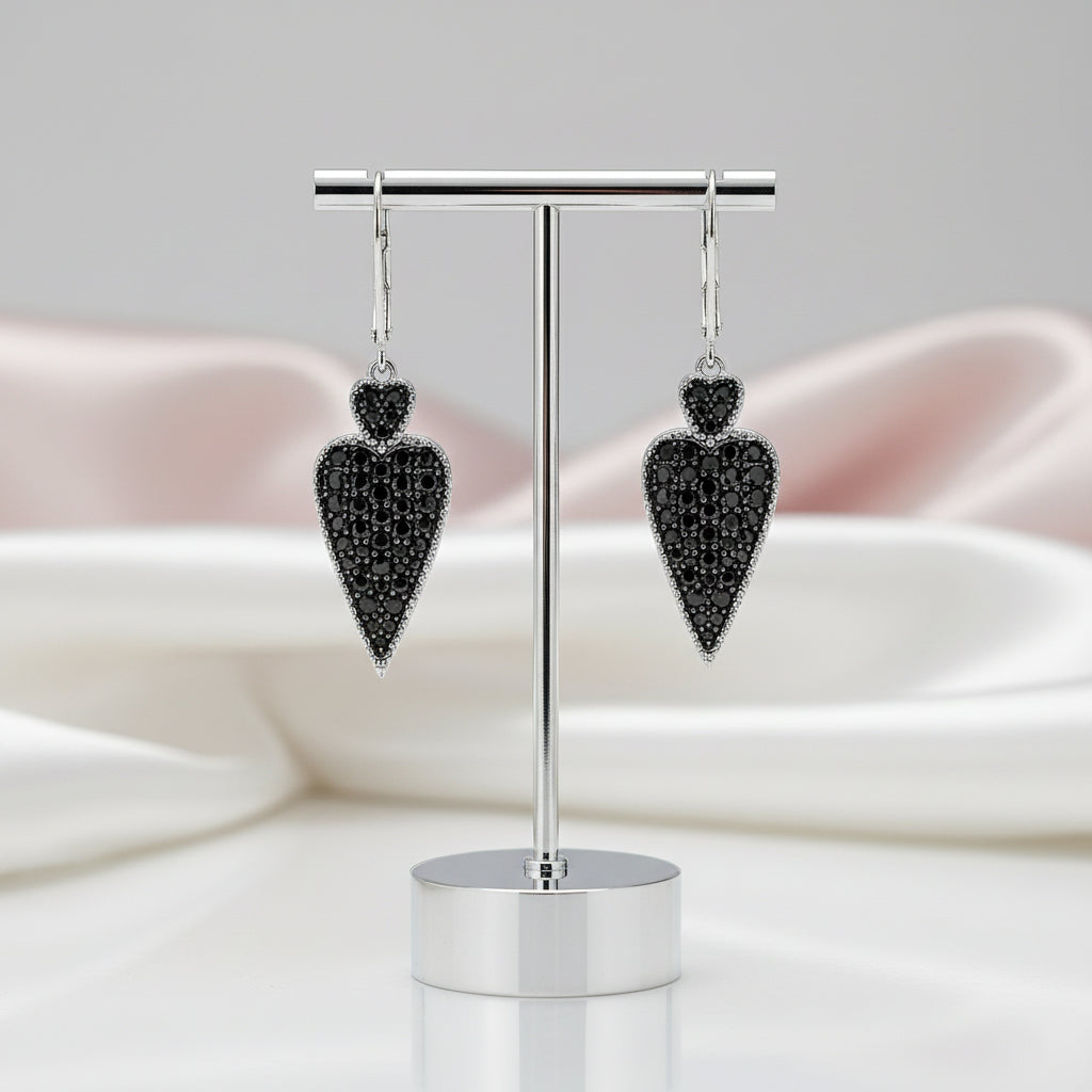 Double Heart 2.50 Ct Black Spinel Drop Earrings