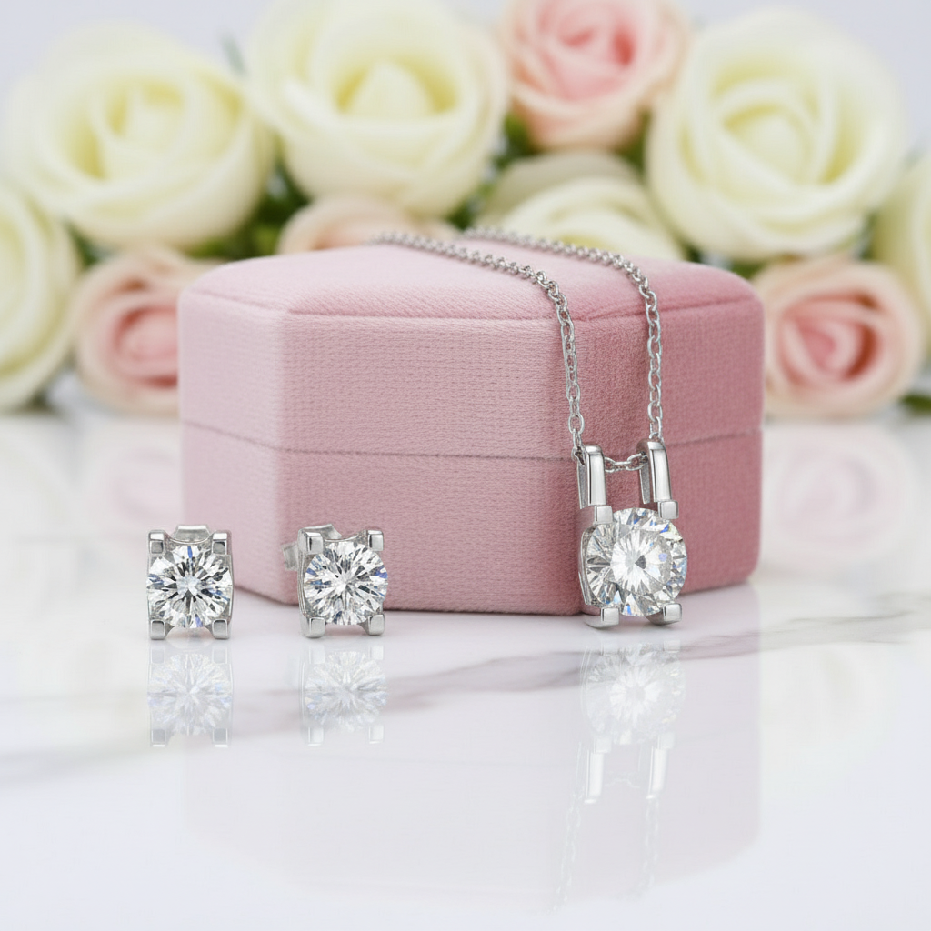 Round Shape Diamond Earrings and Necklace