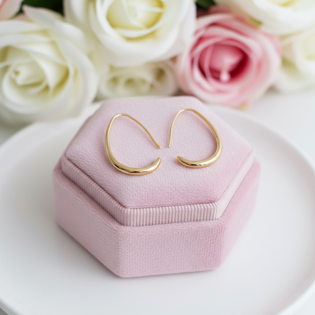Simple Design of Elliptical Metal Earrings