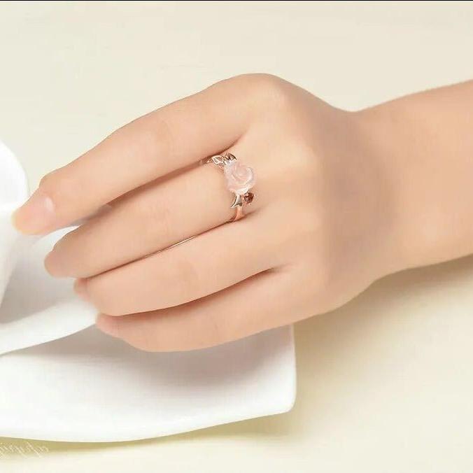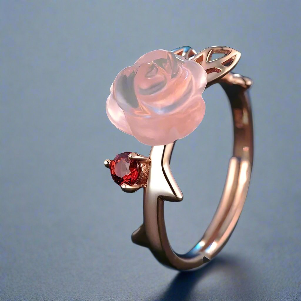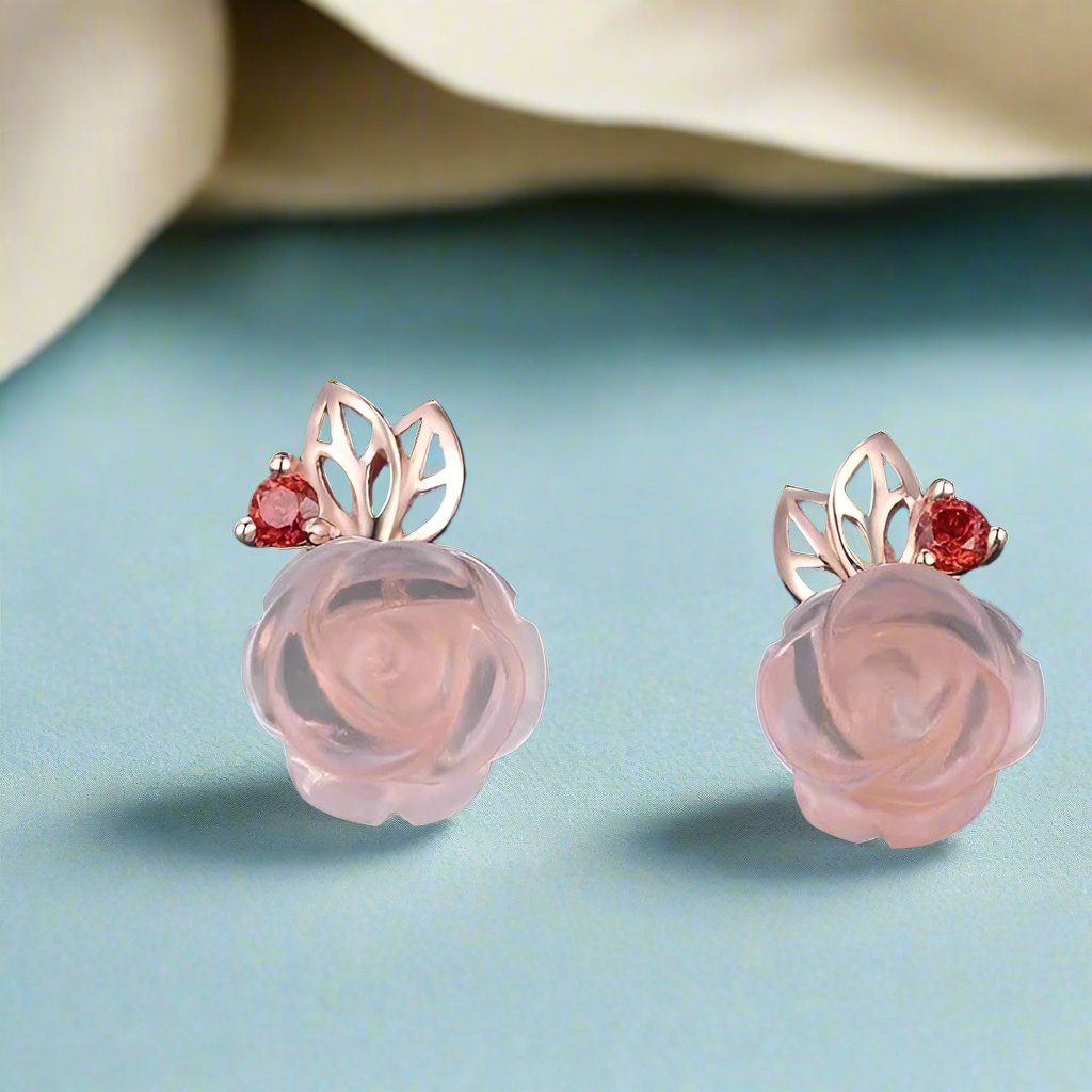 Exquisite Rose Flower Jewelry Set with Red Quartz Stone