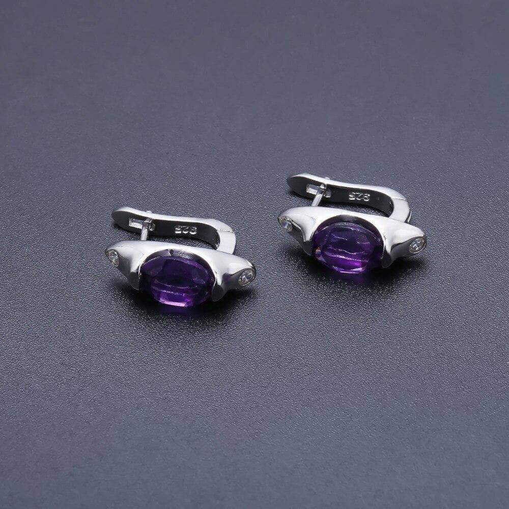 Natural Amethyst Gemstone Ring and Earrings Jewelry Set