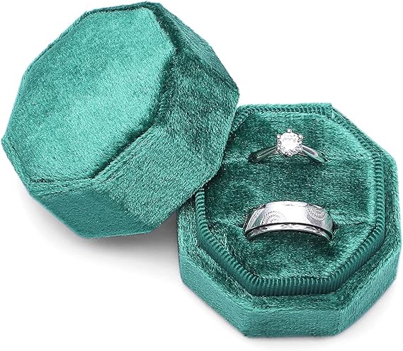 Stylish and fancy octagon-shaped velvet ring boxes are guaranteed to make any simple occasion extra special! Well-made. High-quality velvet. Perfect for photoshoots, engagement proposals, weddings, passing down heirlooms, gifting, and all other occasions.