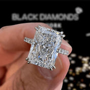 Discover the perfect ring with our Elegant 3.0ct Radiant Cut Lab Grown Diamond Engagement Ring from Black Diamonds New York. Expertly crafted in 14k white gold, it features a 7*9mm center diamond surrounded by round side stones and a 1.6mm bandwidth. Create a memorable moment with this affordable and exquisite piece.