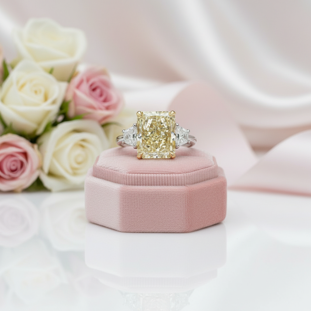 Three Yellow Stone Diamond Radiant Cut Engagement Ring