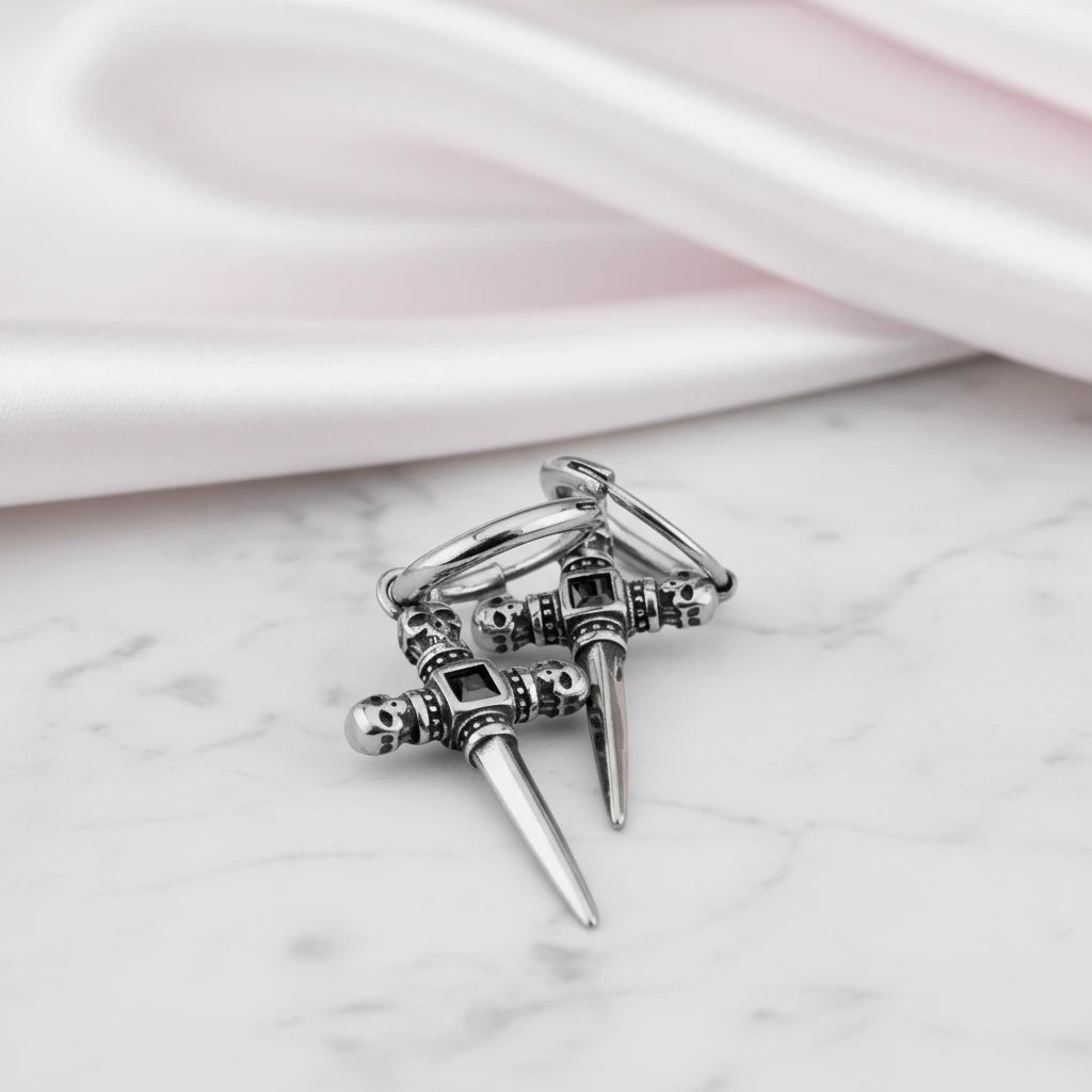 These Stainless Steel Skull Cross Drop Earrings feature a unique design with sparkling diamond alternatives. Made from durable stainless steel, they offer a stylish and affordable accessory for both men and women. Perfect for adding a bold touch to any outfit.