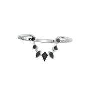 Black rhodium silver or gold is dark grey to black in color plating. It is a very intricate process and varies each time. Plating longevity is very much dependent on the individual and the environmental conditions it is exposed to (e.g., water, soaps, natural skin oils, chemicals, etc.). Black rhodium is a temporary finish only; we have seen plating last anywhere from days, months to even years. We offer free re-plating up to 3 months.