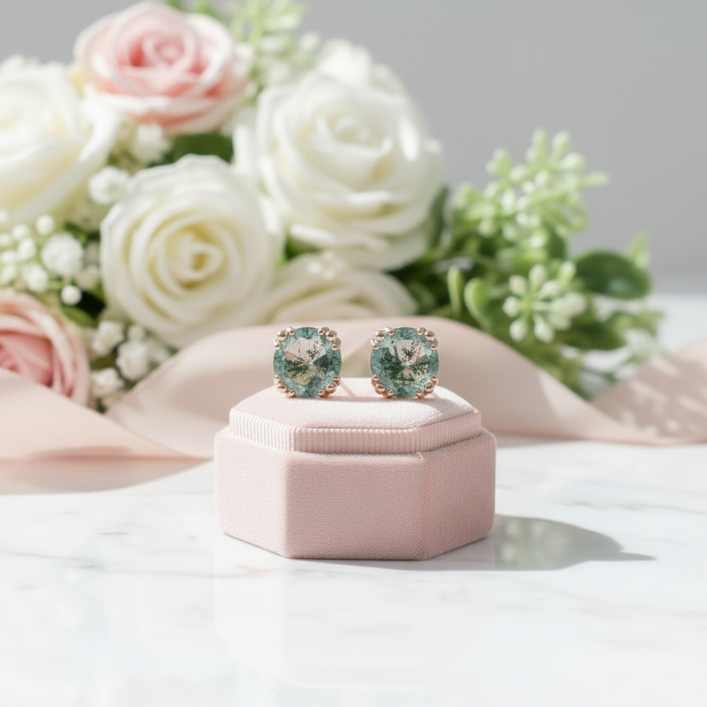 1.0 Ct 6mm Round Cut Moss Agate Claw Prongs Studs Earrings