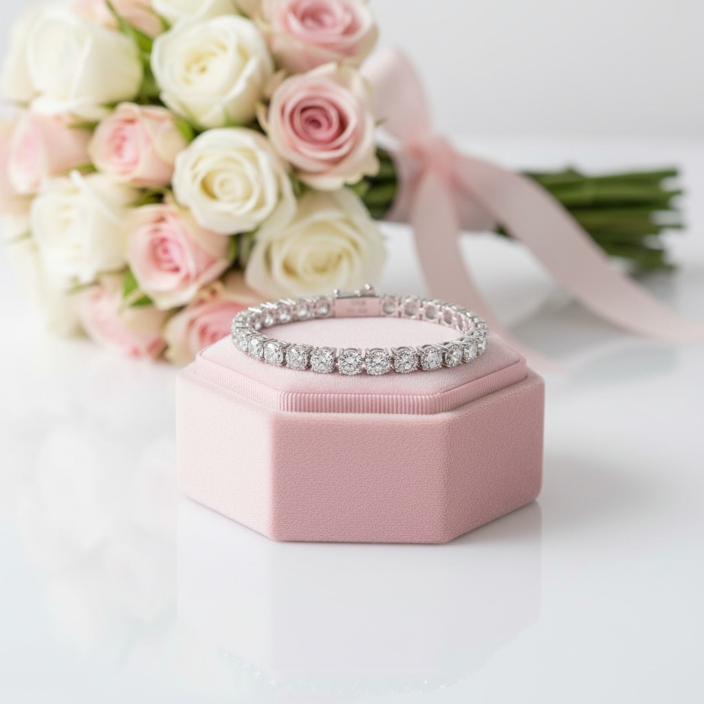 Sparkle your way through the room with this absolutely stunning Round Cut Certified Moissanite Diamond Tennis Bracelet. This elegant piece of jewelry exudes a luxurious feel, with each individual moissanite cut in a perfect round shape to capture and refract light superbly. With its lustrous appeal, this bracelet truly stands out. The round-cut moissanite makes a wonderful use of the light, producing an illuminating sparkle that will leave everyone breathless. This spectacular accessory is undoubtedly the epitome of elegance!