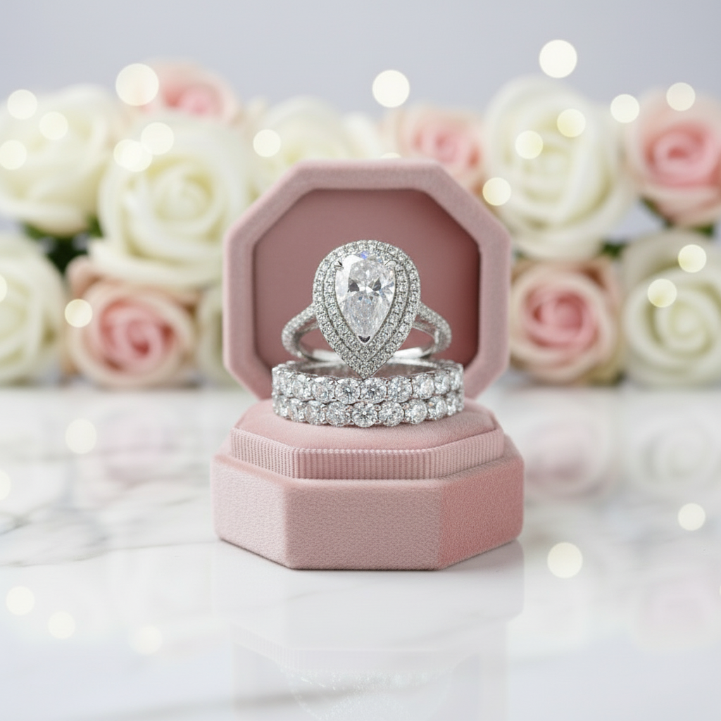 Eternity Double Halo Pear Cut 3-Pieces Wedding Set