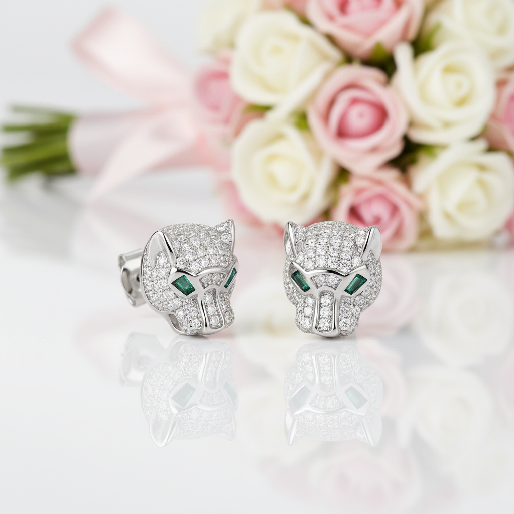 Elevate your style with our luxurious Hollow Leopard Head Diamond Earrings, crafted from 925 Sterling Silver and coated in White Gold for a timeless finish. Featuring brilliant Diamond Alternatives, these earrings offer a bold yet elegant look. The push-back closure ensures a secure and comfortable fit. Perfect for adding a touch of sophistication to any outfit, these earrings make a stunning statement.