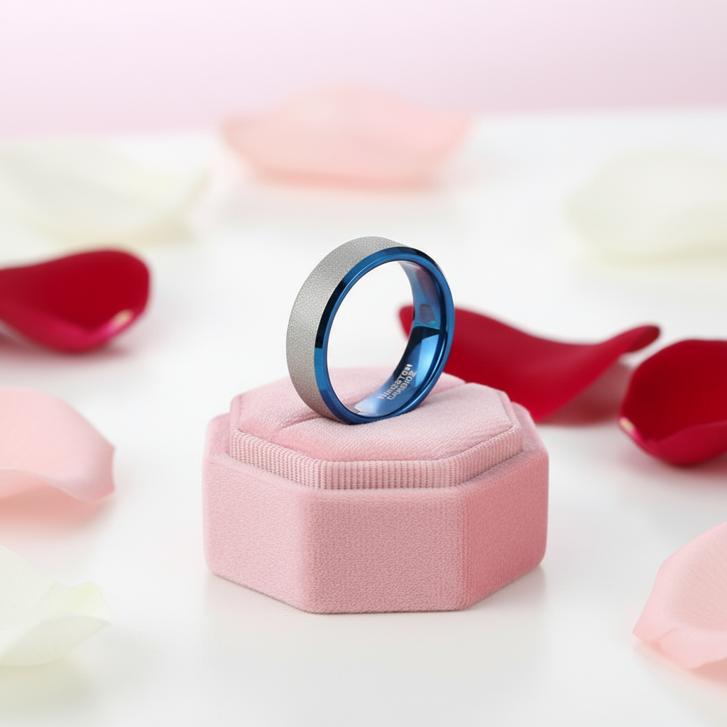 This Frosted Blue & Silver Tungsten Carbide Wedding Band is crafted from high-quality, ethically sourced materials designed to endure a lifetime. Ditch the ordinary and expensive bands for something truly lasting and unique.