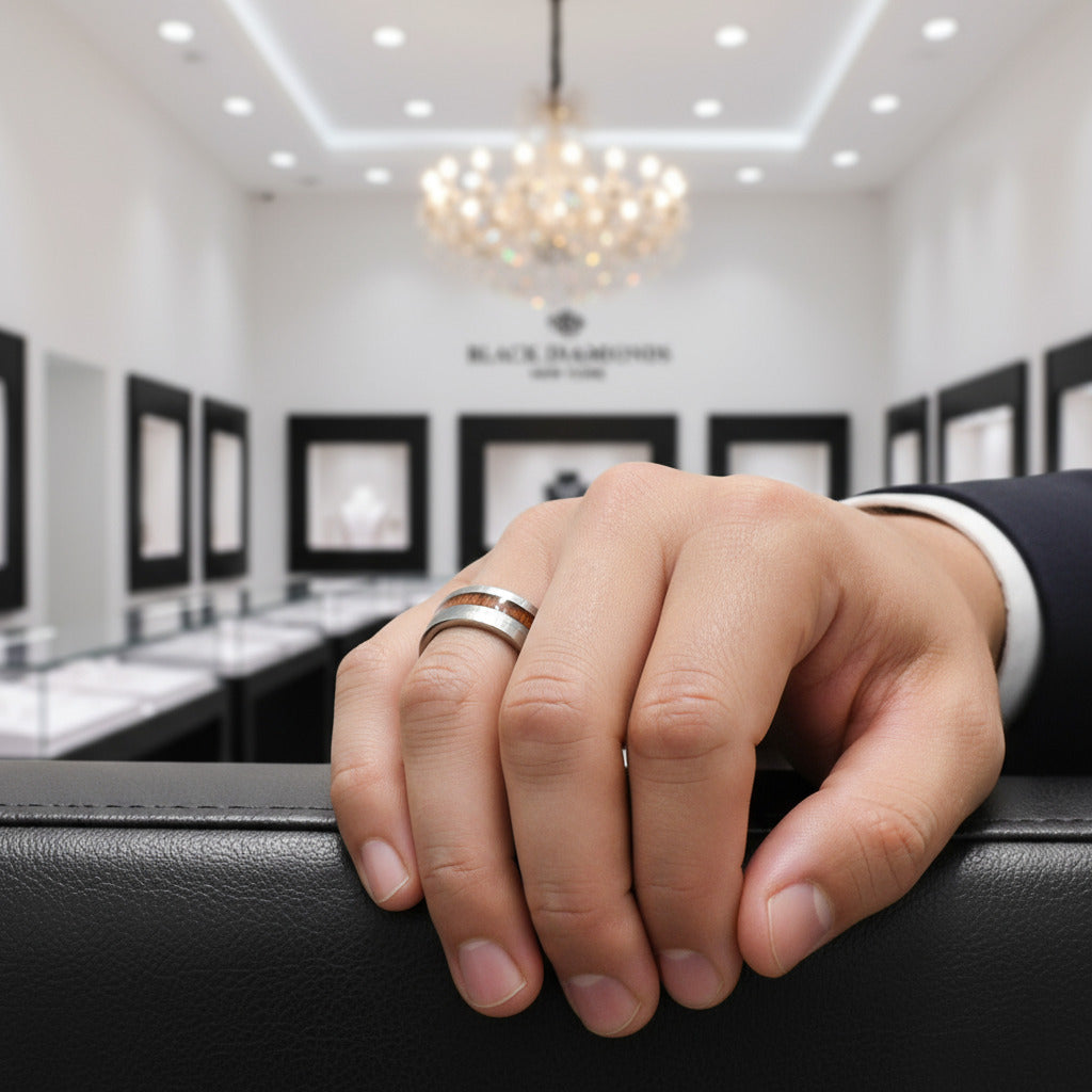 Crafted from durable, ethically sourced materials, this Nature Wood Titanium Men's Wedding Band offers lasting quality without the high price.