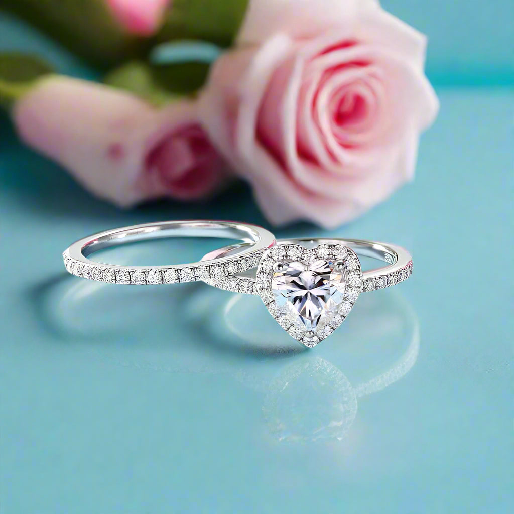 This stunning 1ct Heart Cut Diamond Ring is crafted from high-quality materials, including a solid 925 Sterling Silver band and a certified Lab Grown Moissanite center stone. The beautiful heart cut of the 6.5mm stone, totaling 1 carat, is accentuated by 34 additional certified Moissanite stones on the sides, totaling 0.34 carats. The band also features 19 certified Moissanite stones, adding an extra 0.19 carats of sparkle to this one-of-a-kind ring.