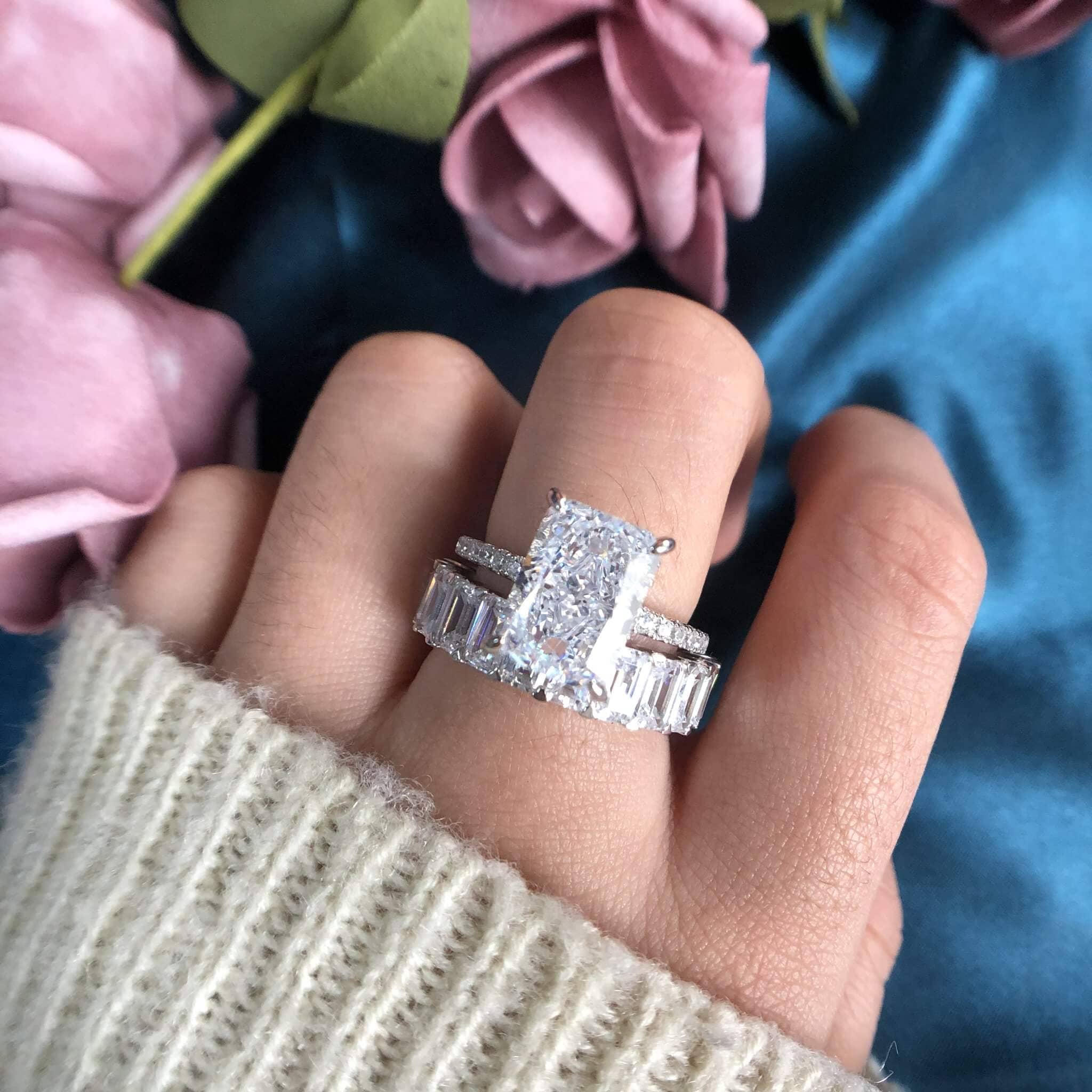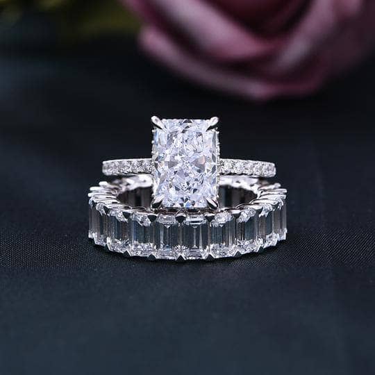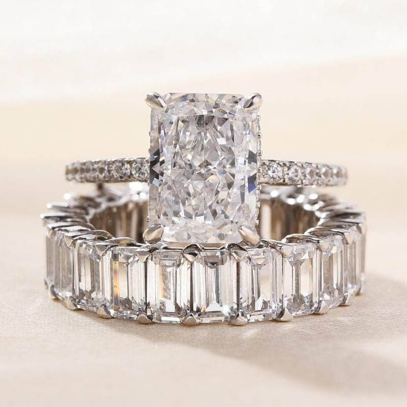 Simulated Diamond Radiant Cut & Emerald Cut Ring Set