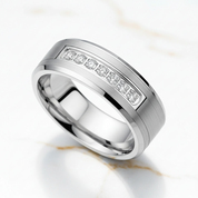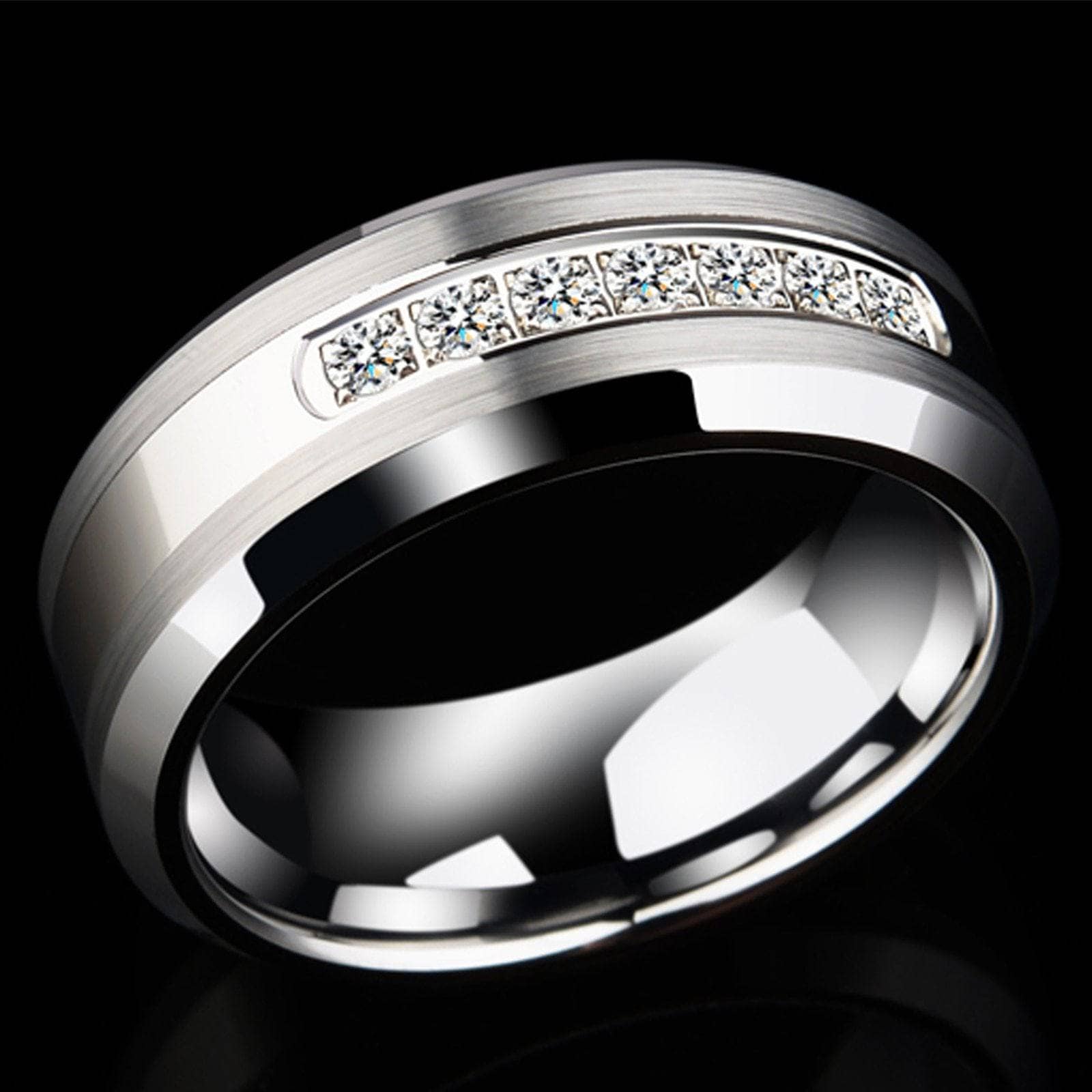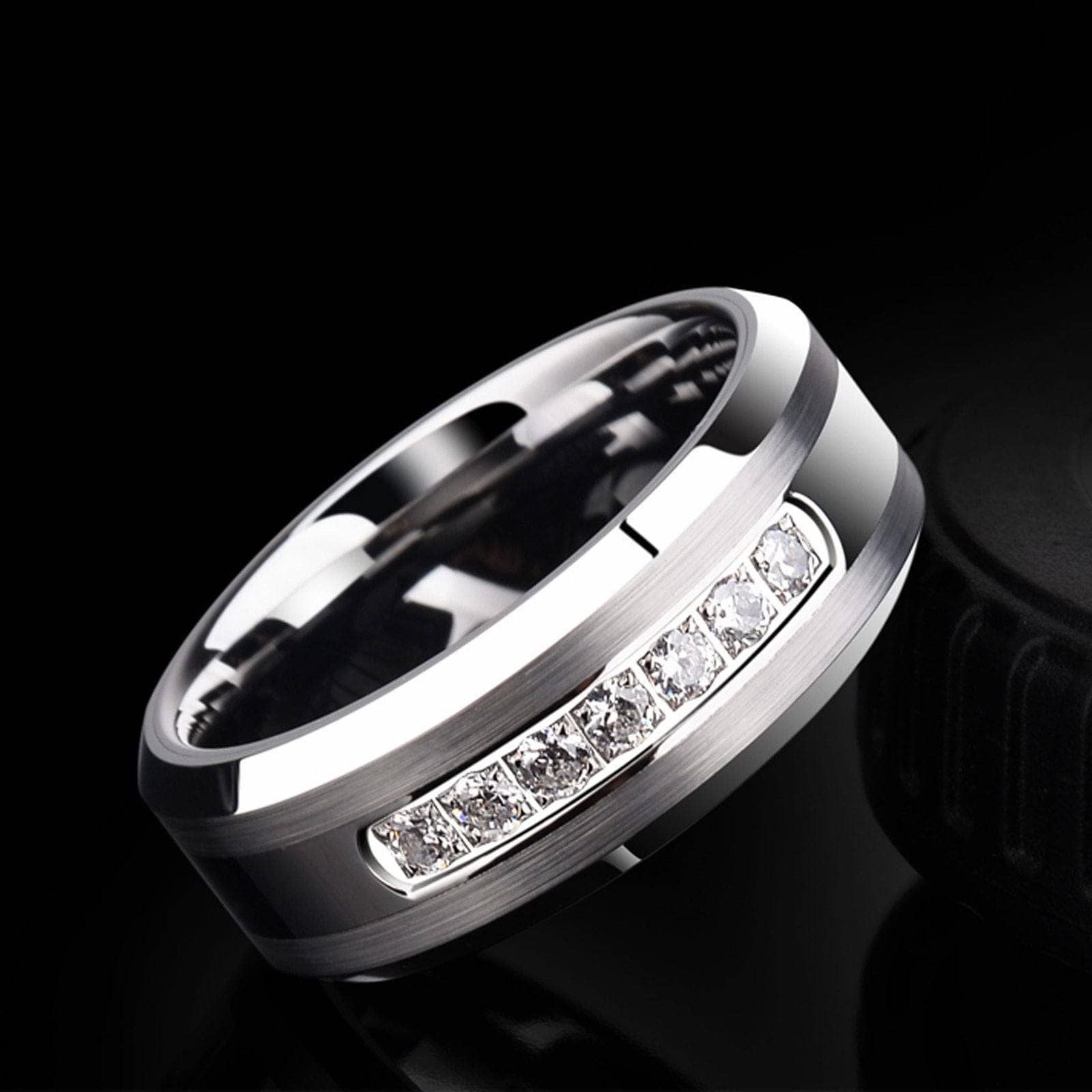 Experience the unparalleled shine and stunning sparkle of genuine diamonds with this handcrafted tungsten carbide wedding band. Perfect for expressing your love and commitment, this ring will capture the hearts of all who see it.