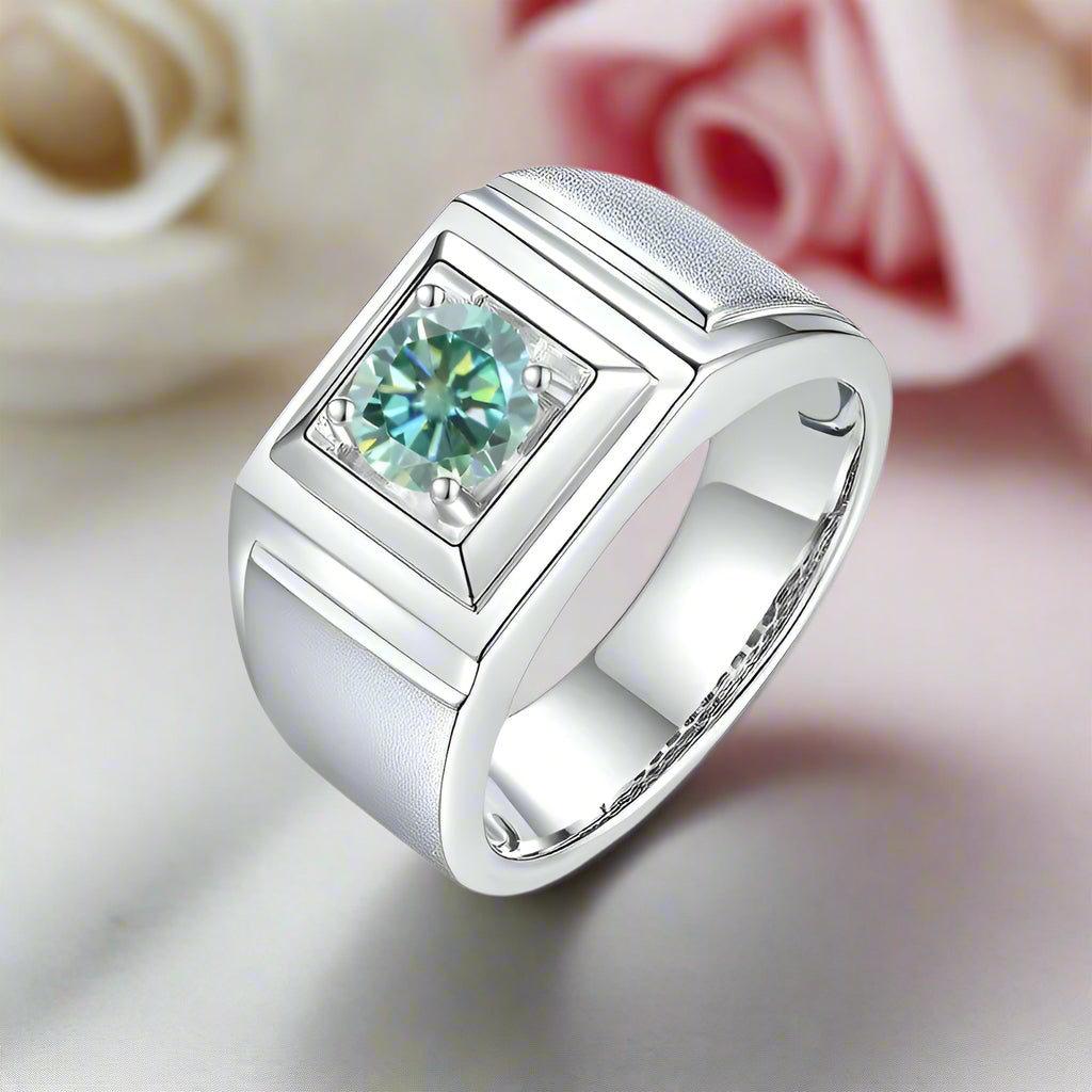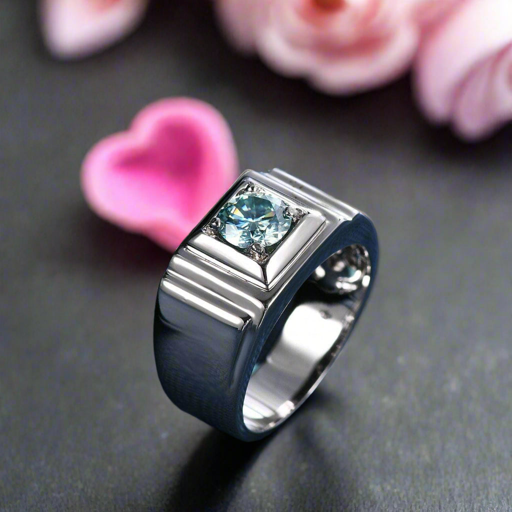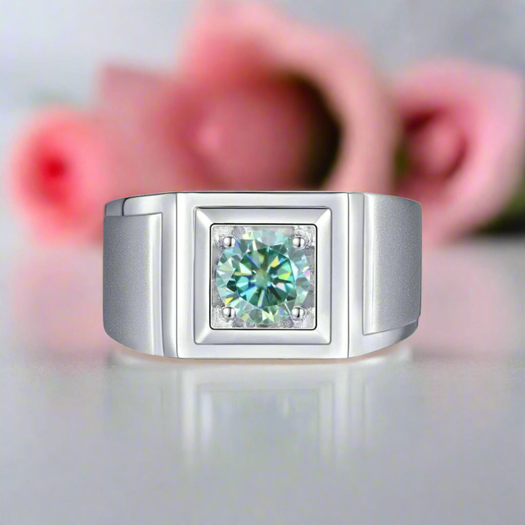 1.0Ct 6.5mm Green Diamond Men's Ring