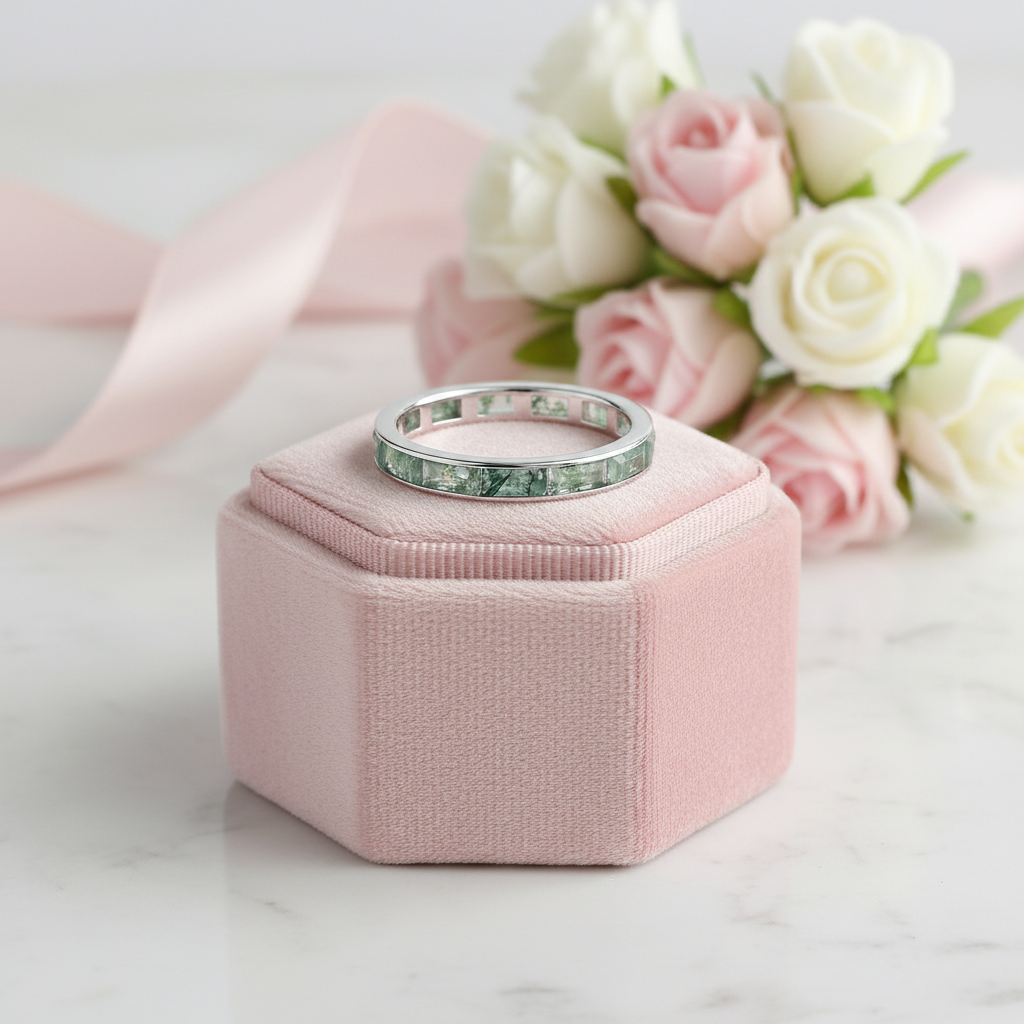 2*4mm Natural Moss Agate Wedding Band